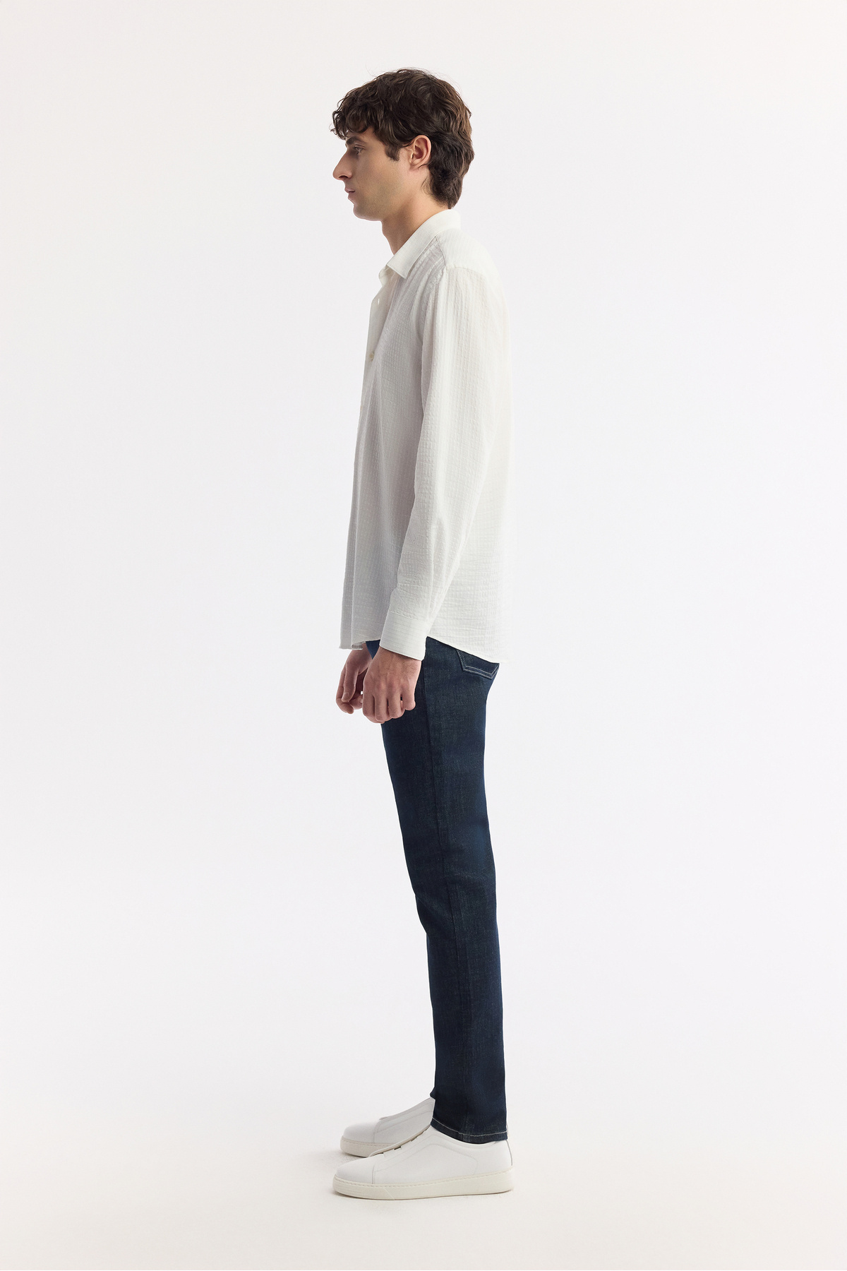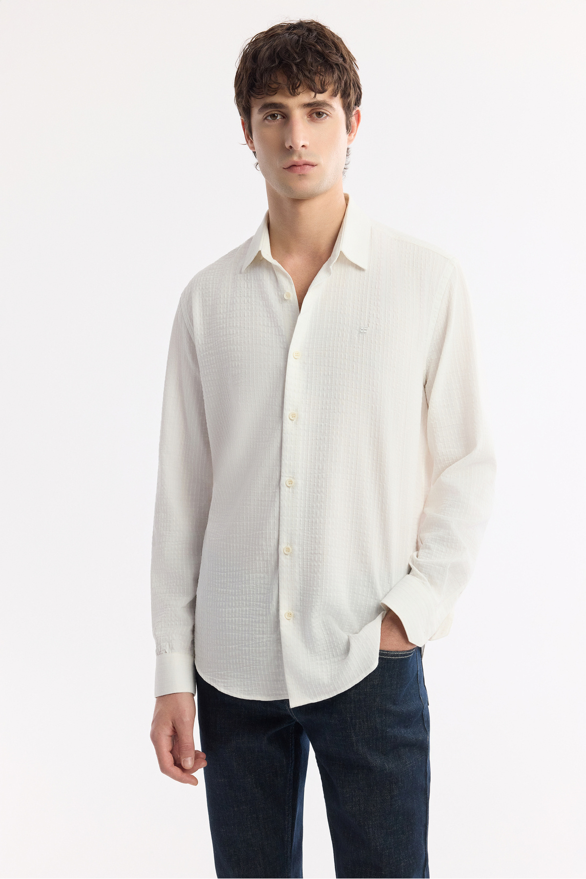 پیراهن مردانه سفید دکمهدار یقه گرد طرحدار سایز معمولی A51Y2136