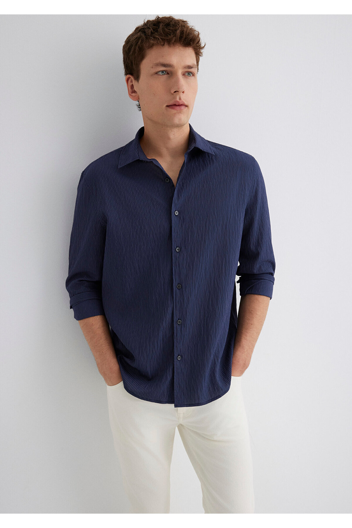 پیراهن مردانه آبی سرمه ای ماوی | 211625 Mavi