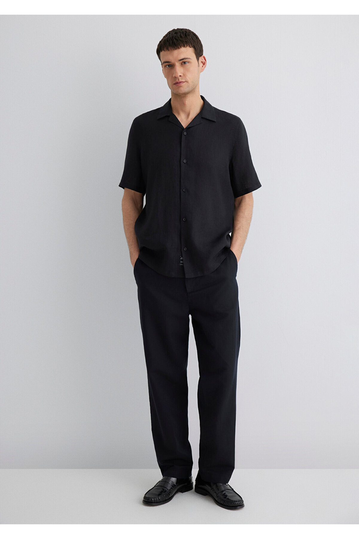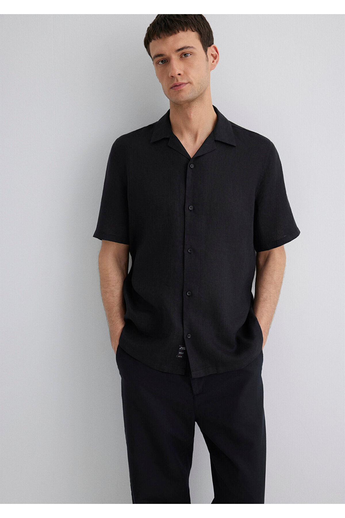 پیراهن کتان مشکی سایز معمولی / برش معمولی 0211474-900
