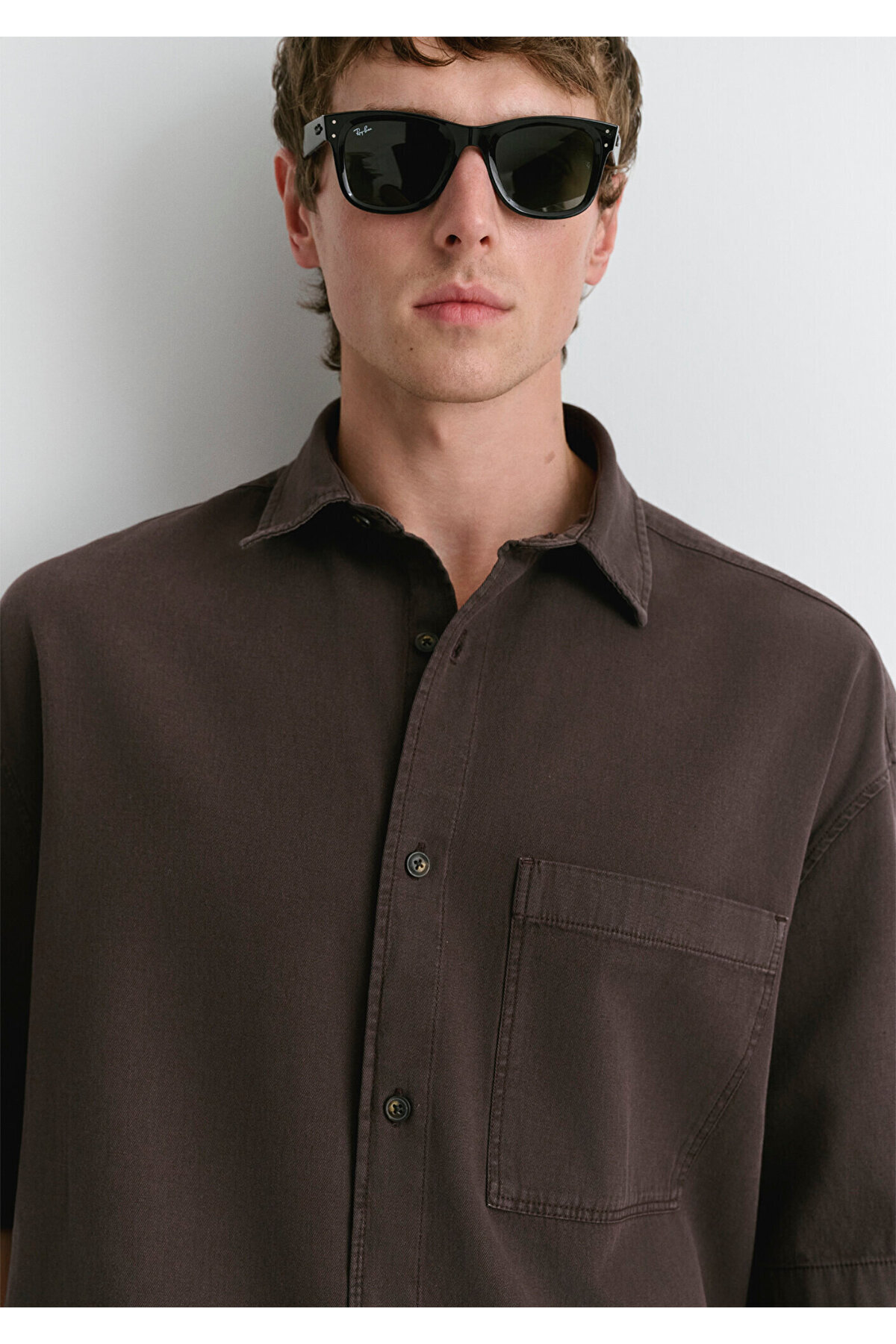 پیراهن قهوهای ترکیبی کتان سایز بزرگ / گشاد 0211559-86683