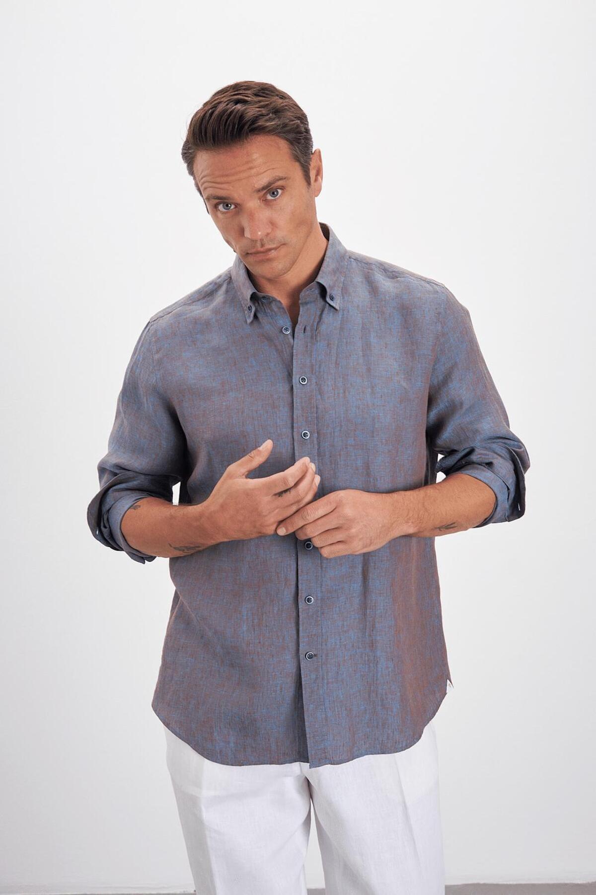 پیراهن مردانه ۱۰۰٪ کتان یقه دکمهدار، راحت و خوشدوخت، رنگارنگ