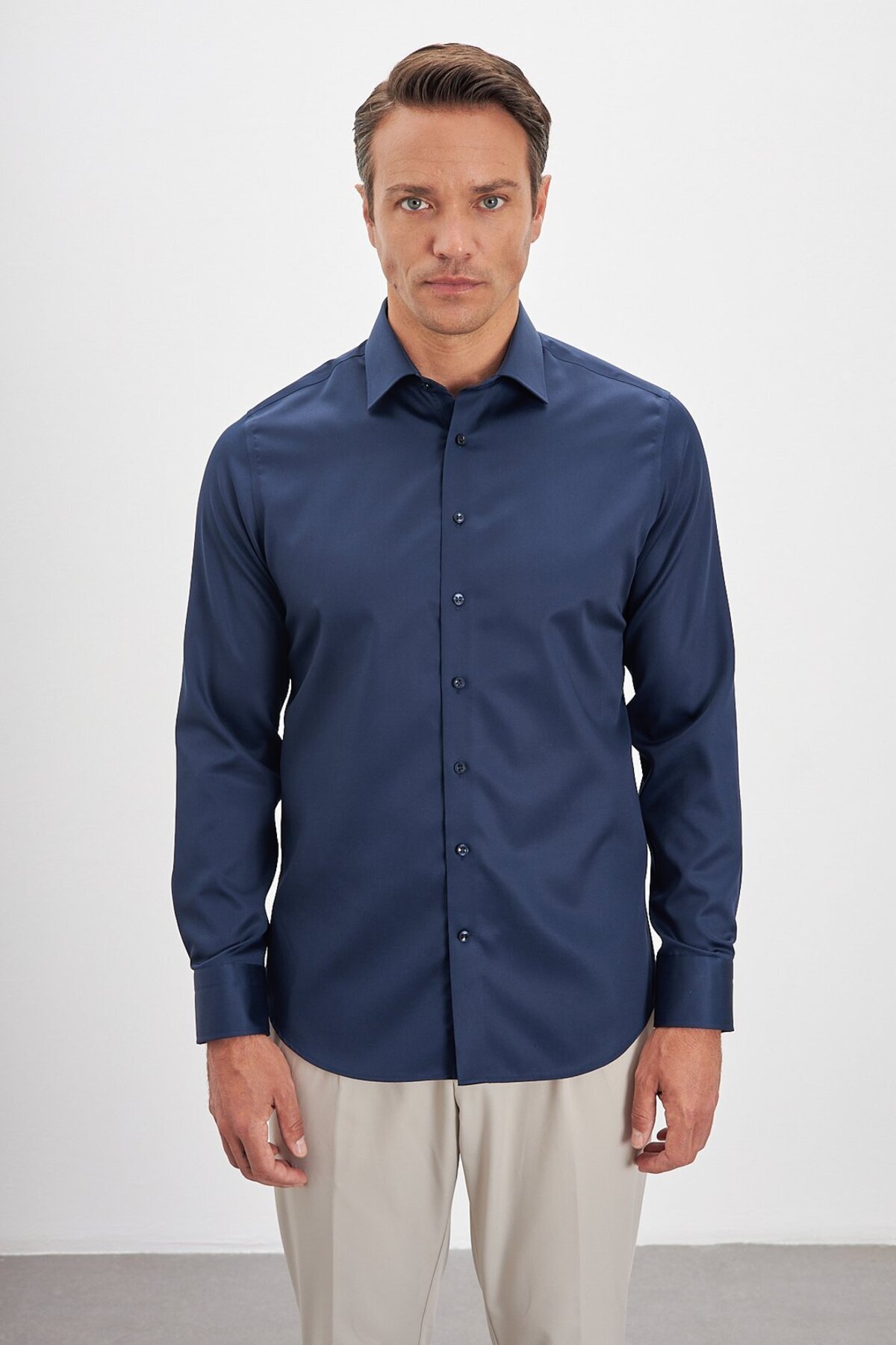 پیراهن مردانه ساتن یقه کلاسیک ۱۰۰٪ پنبه‌ای بدون اتو (بدون نیاز به اتو)