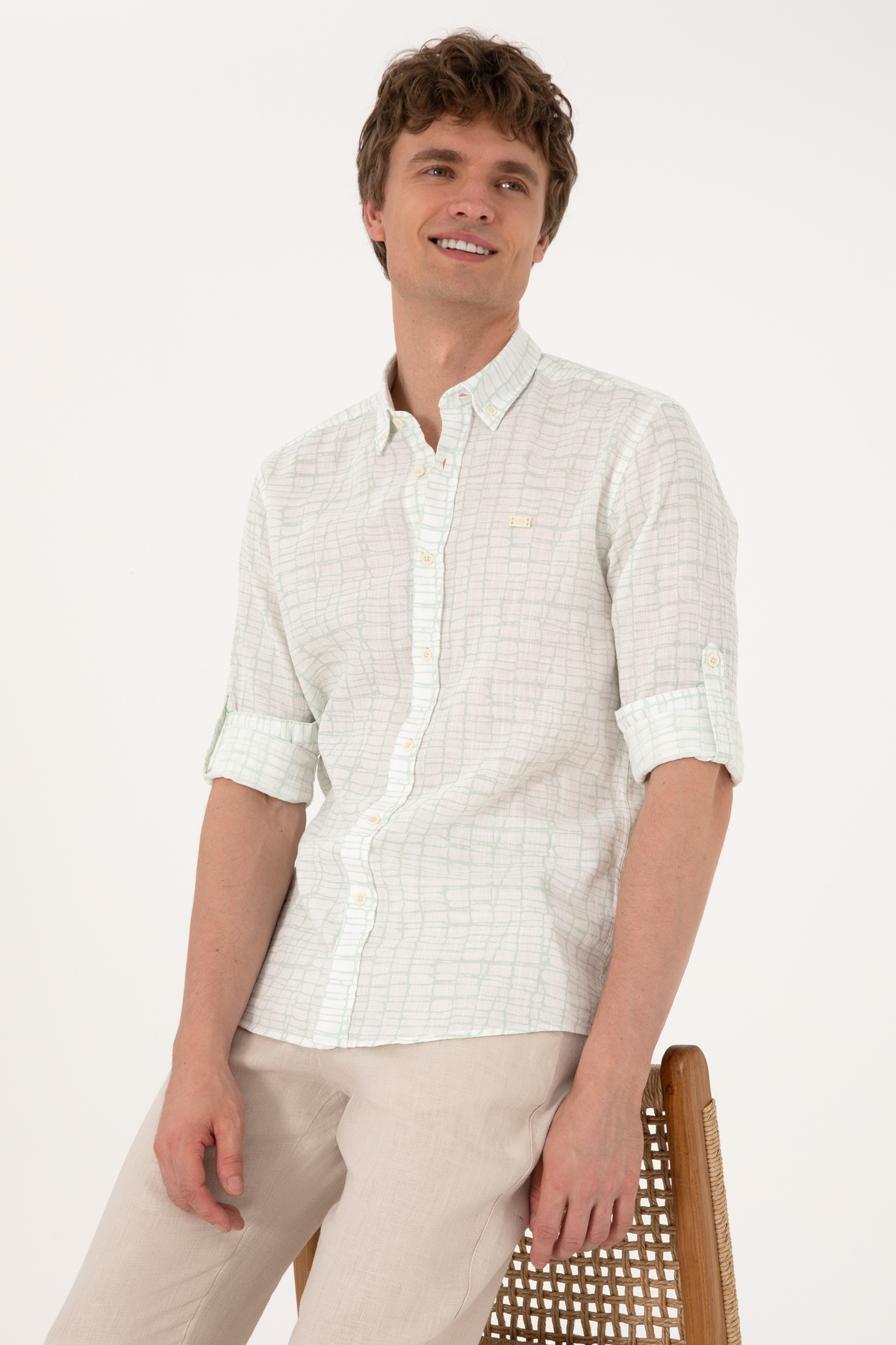 پیراهن یو اس پولو سبز آستین بلند منسوجات | | نمایندگی یو اس پولو