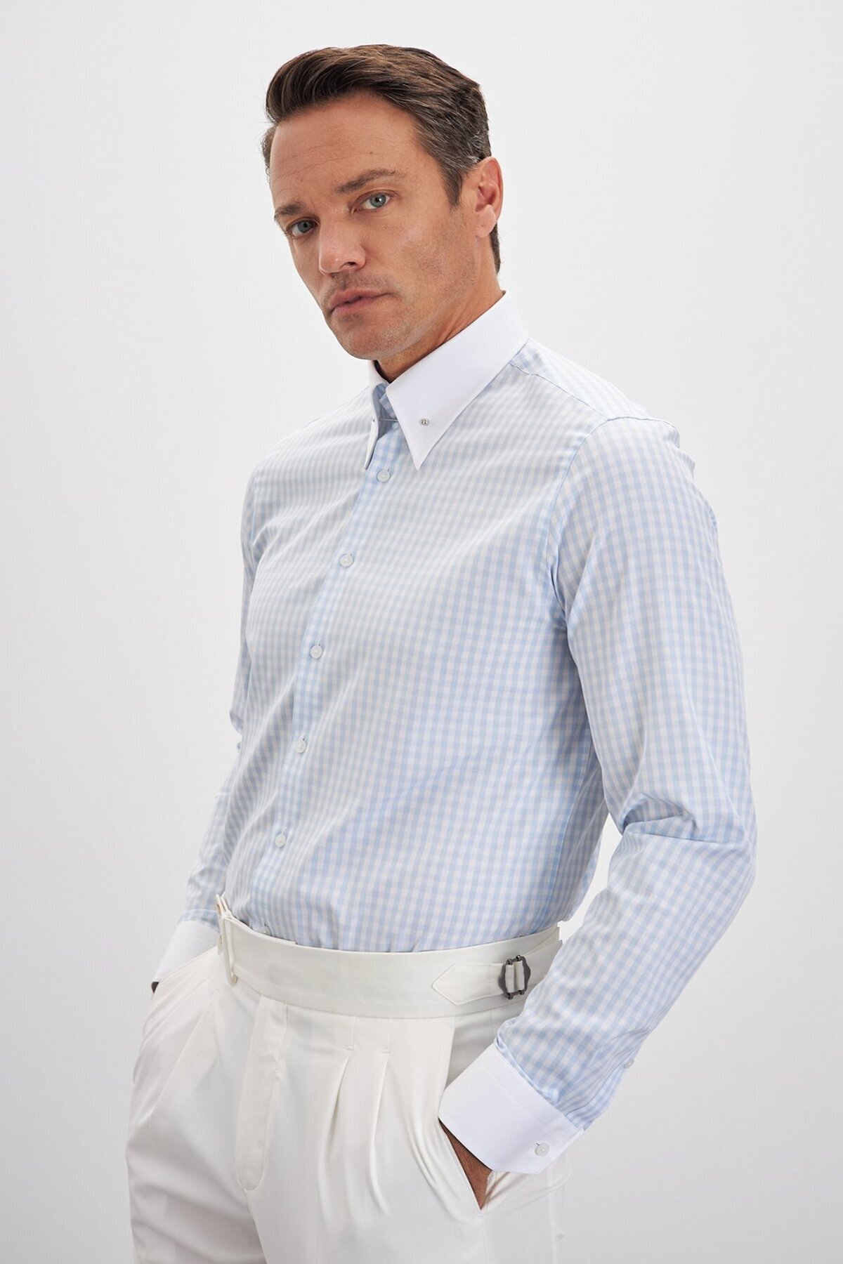 پیراهن چهارخانه مردانه طرحدار ۱۰۰٪ پنبهای با یقه سنجاقدار و راحتی