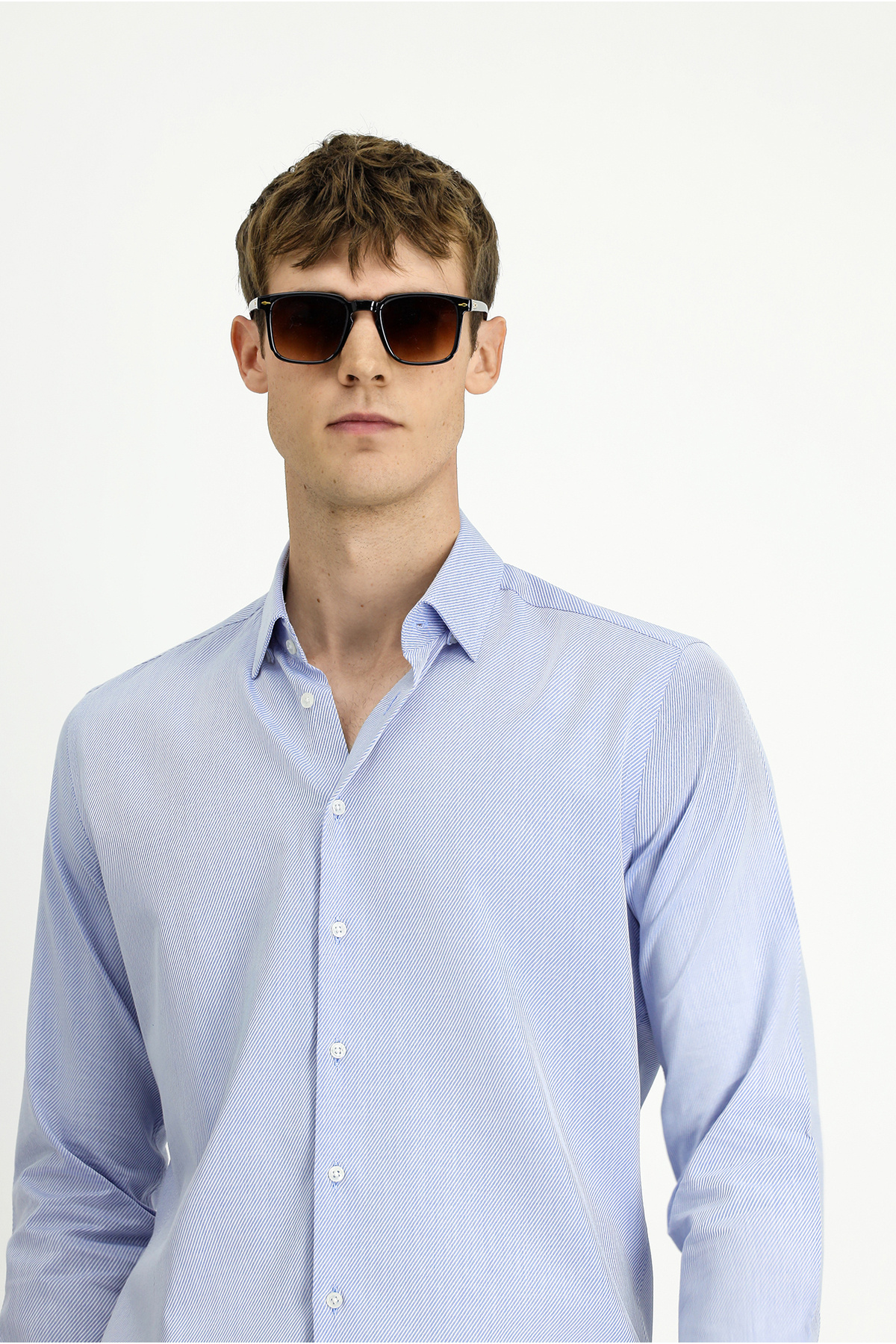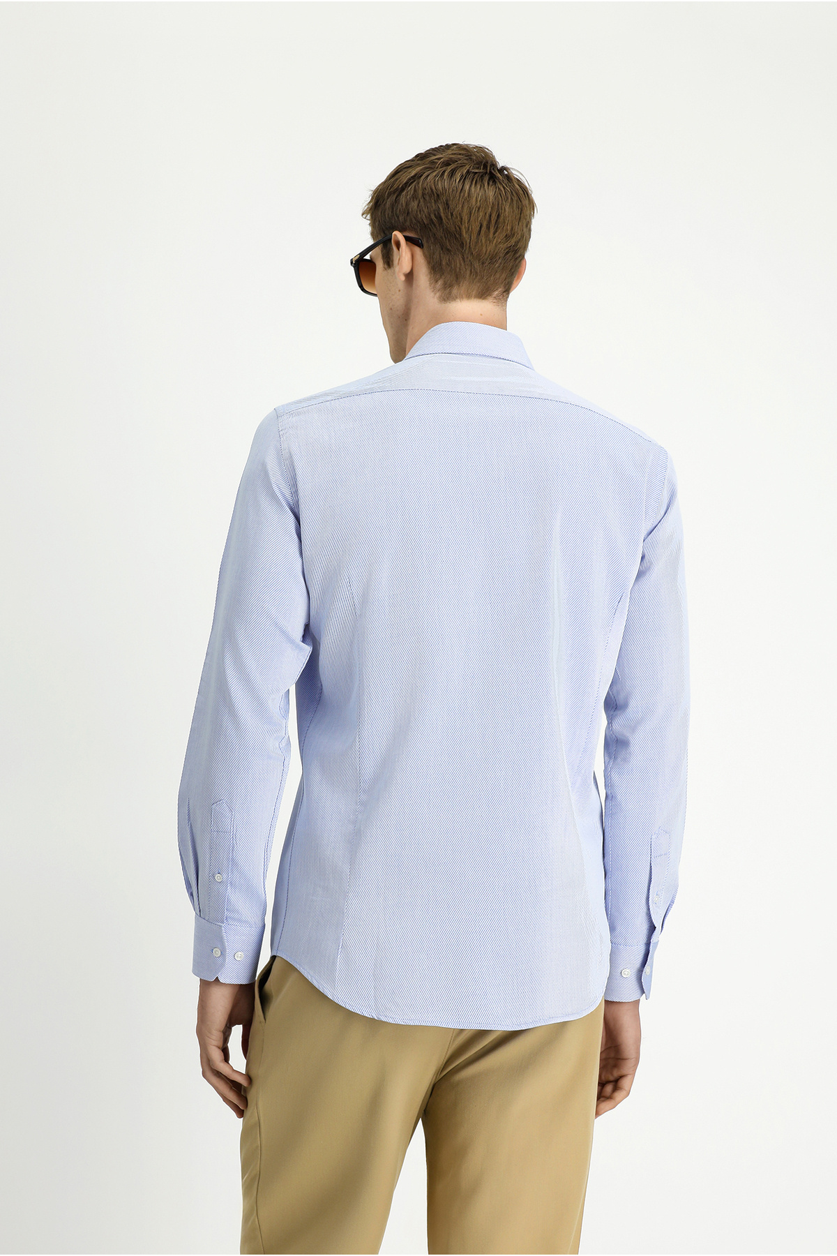 پیراهن نخی طرحدار کلاسیک آستین بلند اسلیم فیت فیت