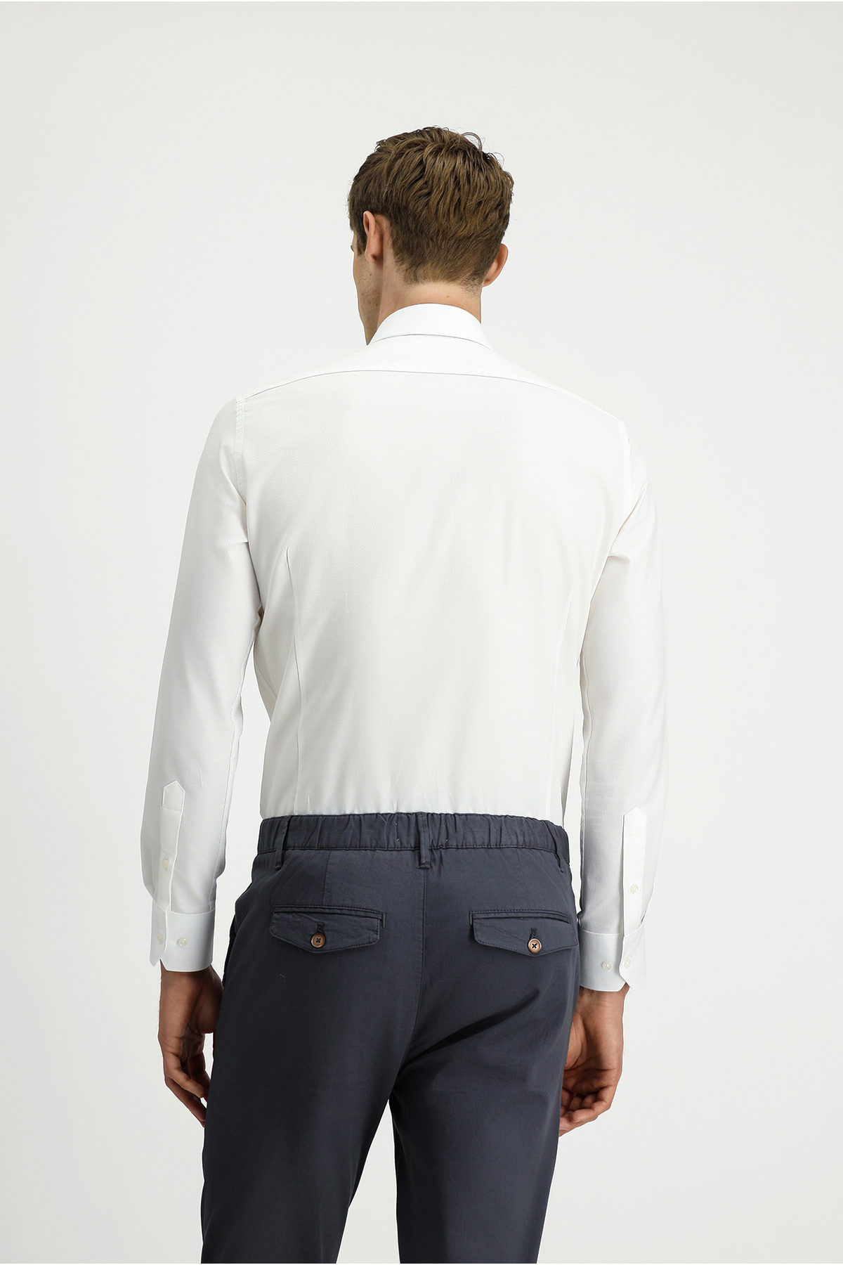پیراهن نخی طرحدار کلاسیک آستین بلند اسلیم فیت فیت
