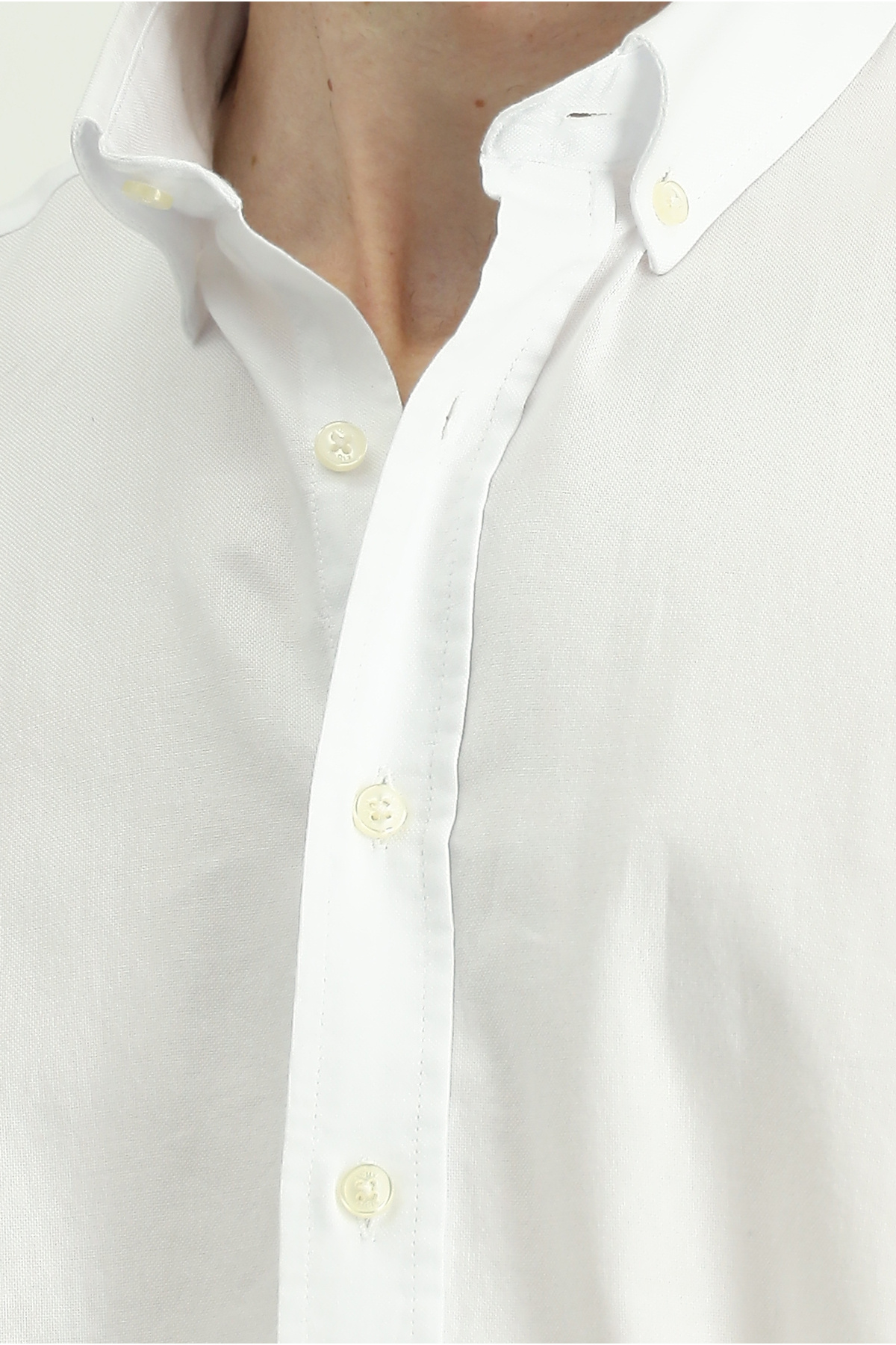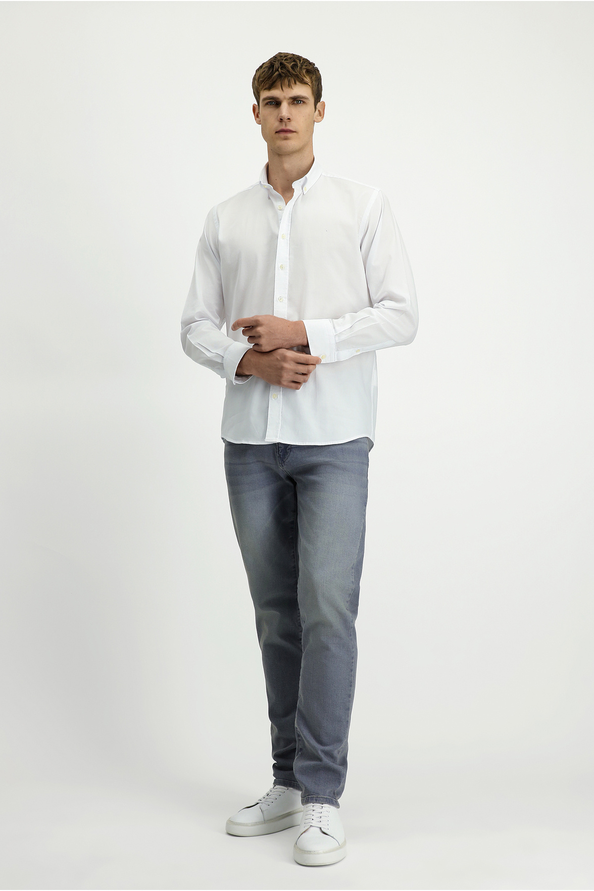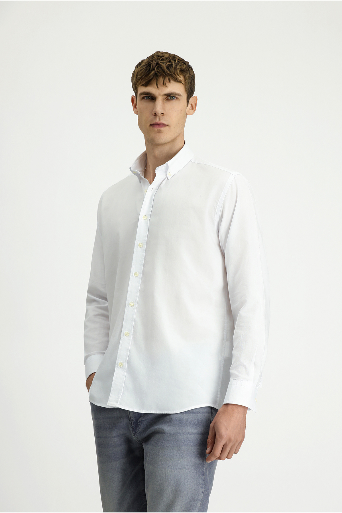 پیراهن نخی آستین بلند معمولی آکسفورد یقه دکمه دار