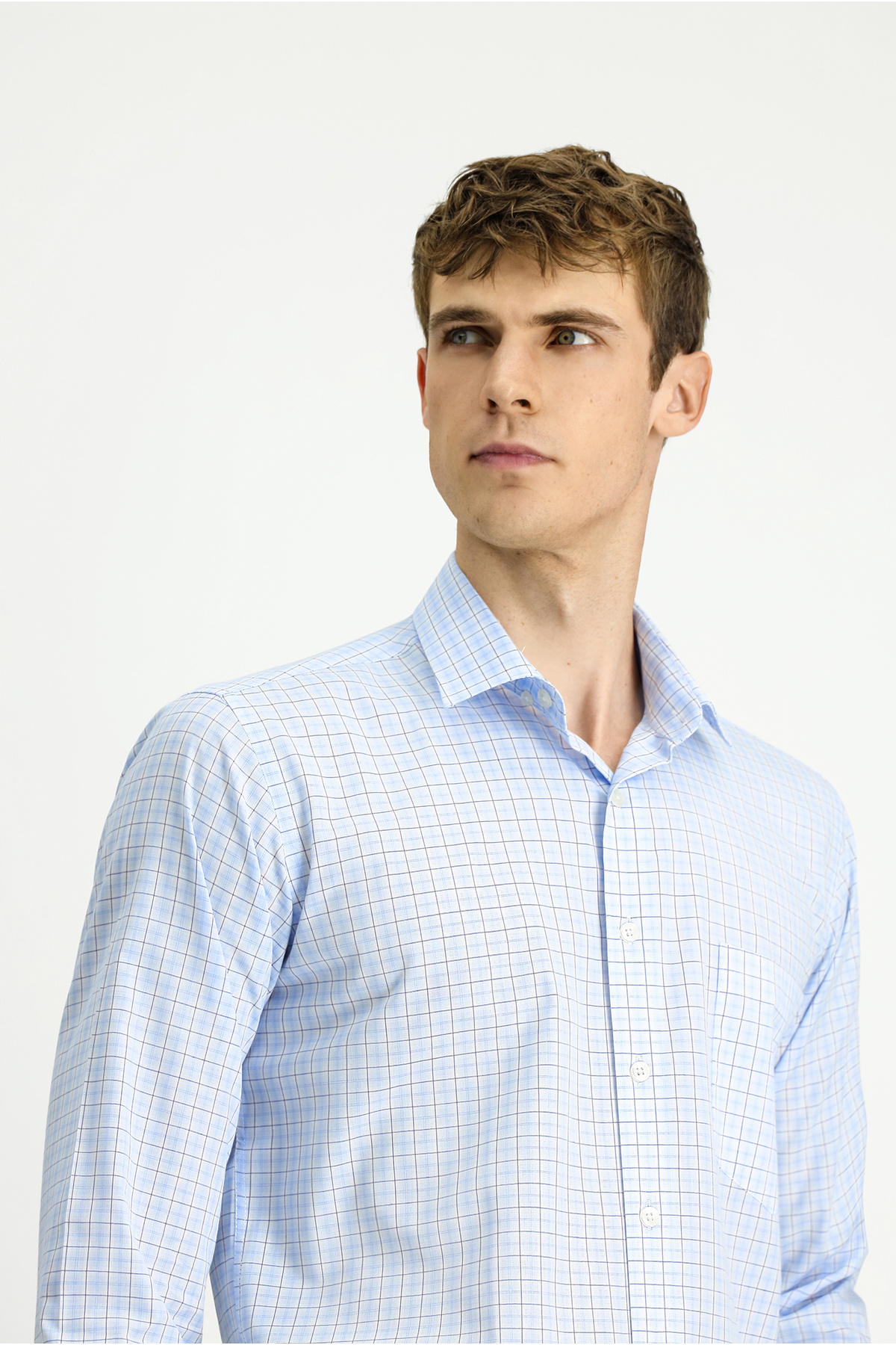 پیراهن چهارخانه نخی آستین بلند معمولی