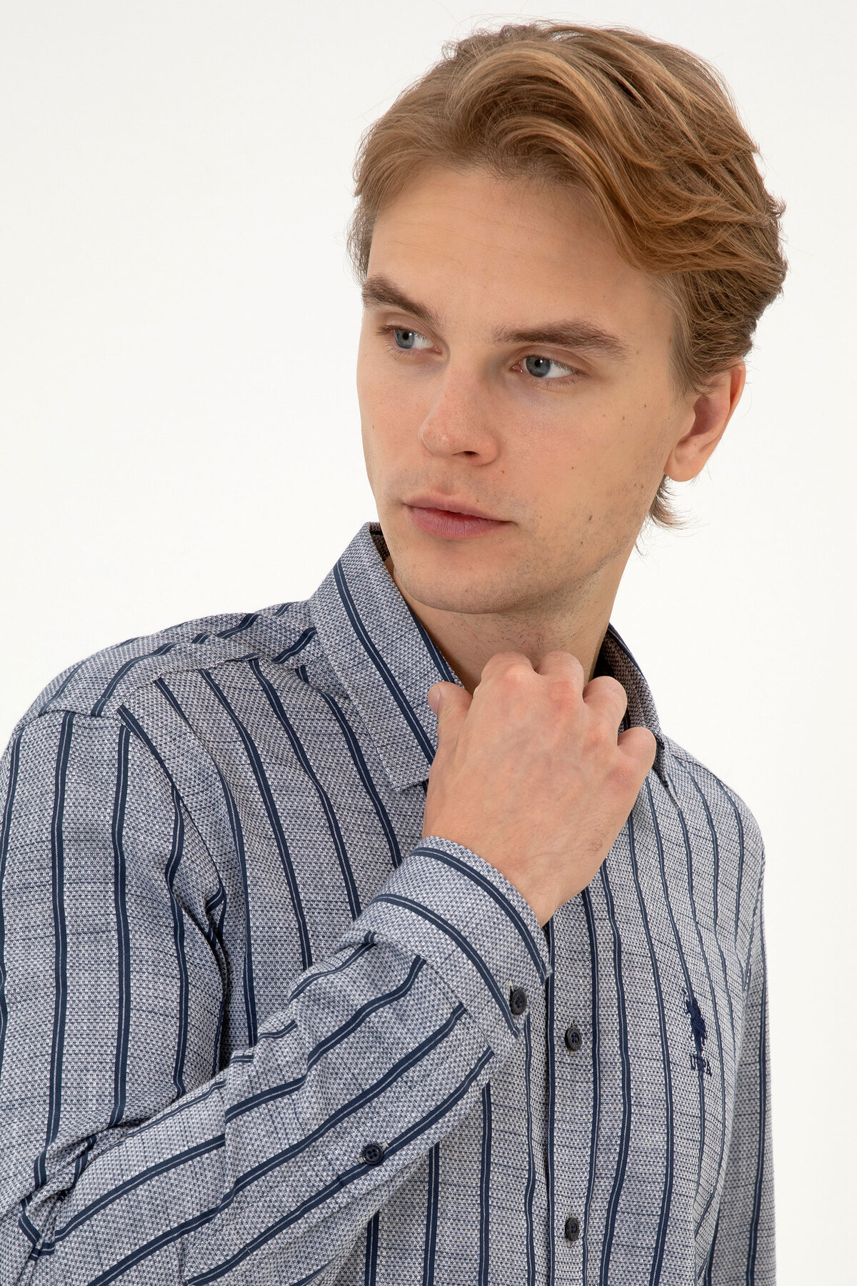 پیراهن یو اس پولو آبی سرمه ای آستین بلند منسوجات | | نمایندگی یو اس پولو