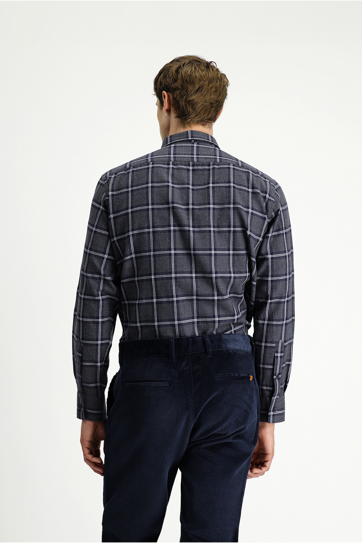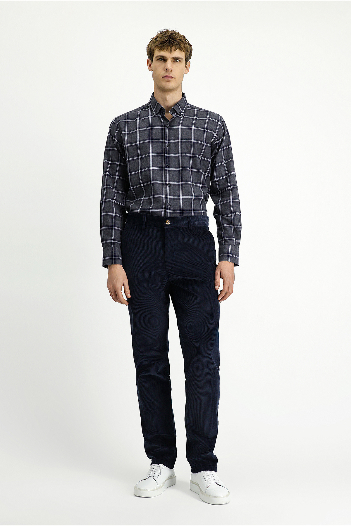 پیراهن ورزشی آستین بلند طرح چوب پنبهای چهارخانه معمولی یقه دکمهدار