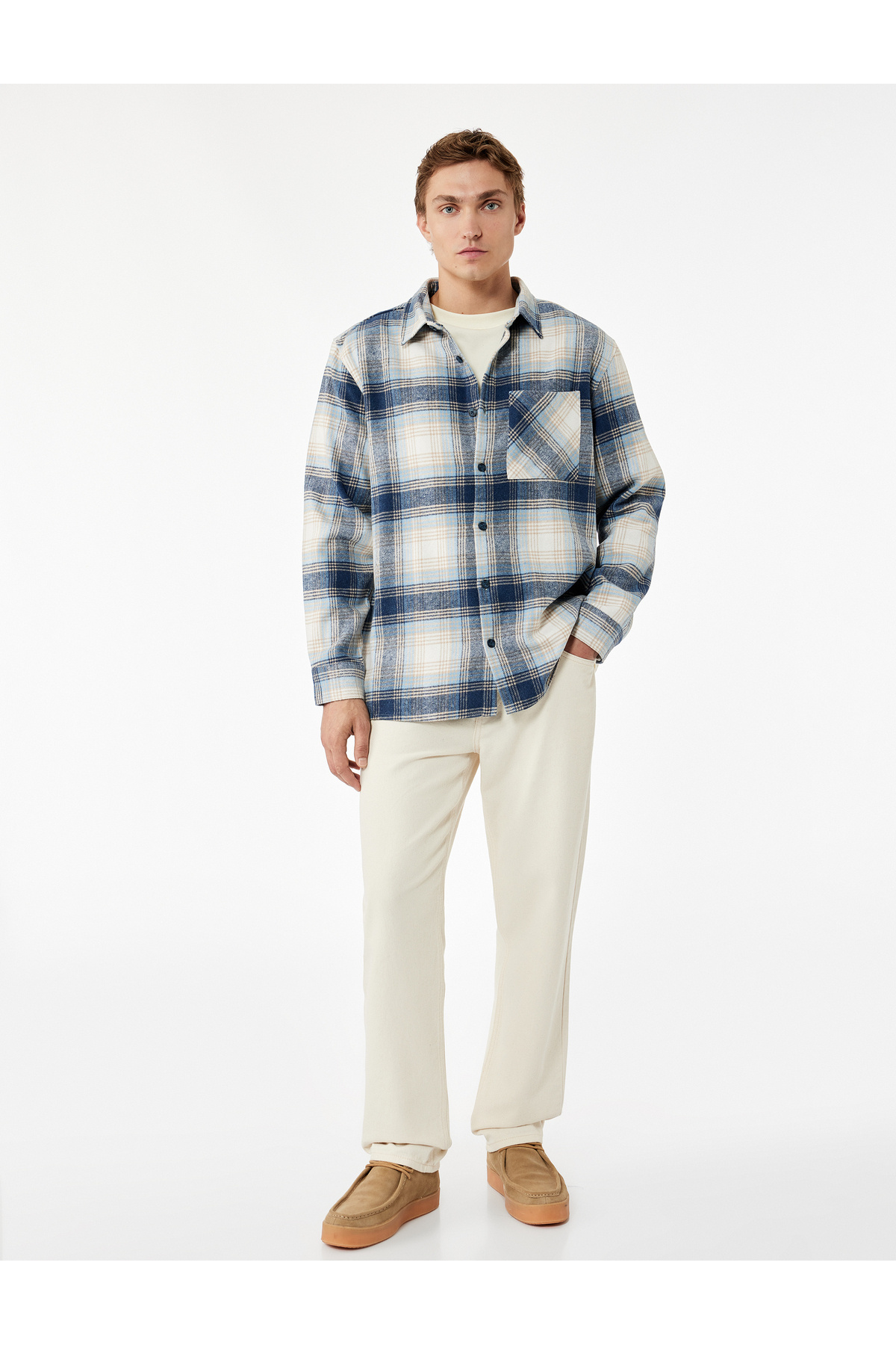 پیراهن آستین بلند یقه کلاسیک طرح چوب با جیب و سایز معمولی