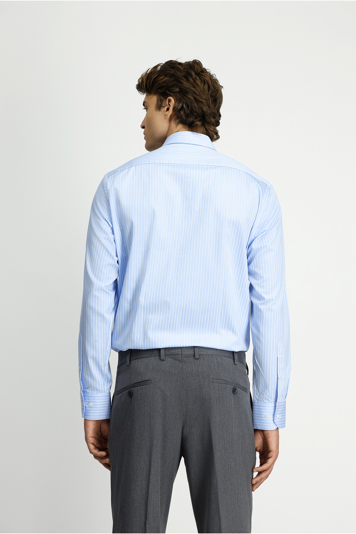 پیراهن نخی راه راه کلاسیک آستین بلند