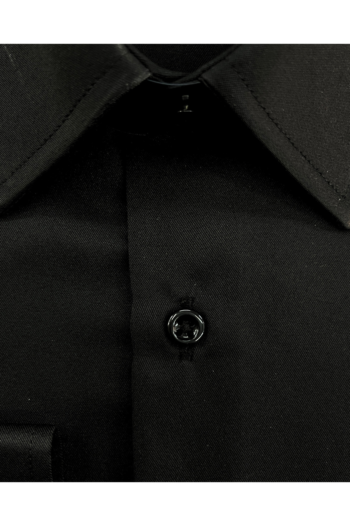پیراهن مردانه مشکی چهار فصل، آستین بلند، اسلیم فیت، پارچه تنفسپذیر، جذب کننده عرق، جنس پارچه: Easy Iron