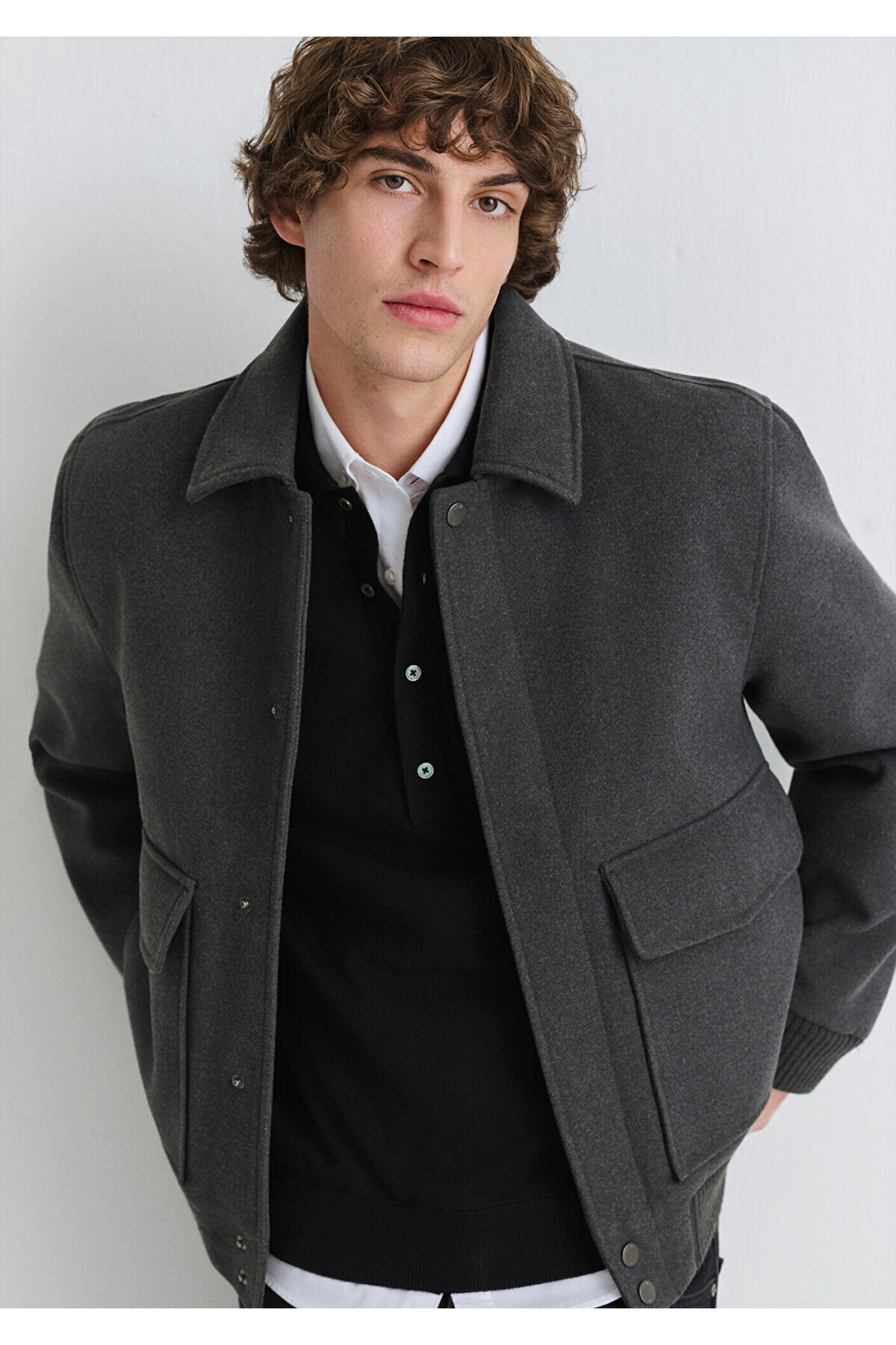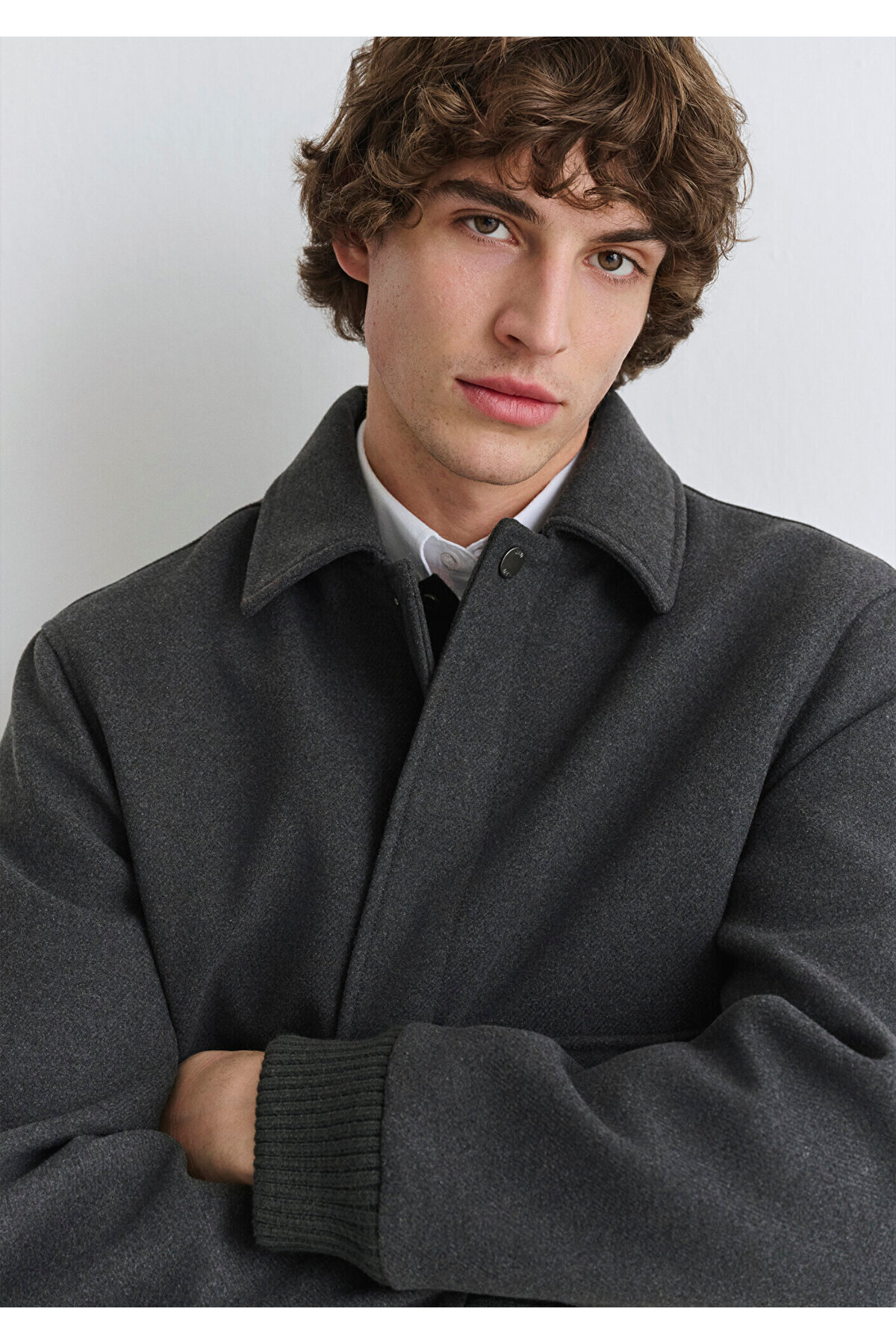 کاپشن پشمی مخلوط آنتراسیت، سایز معمولی / برش معمولی 0110658-80023