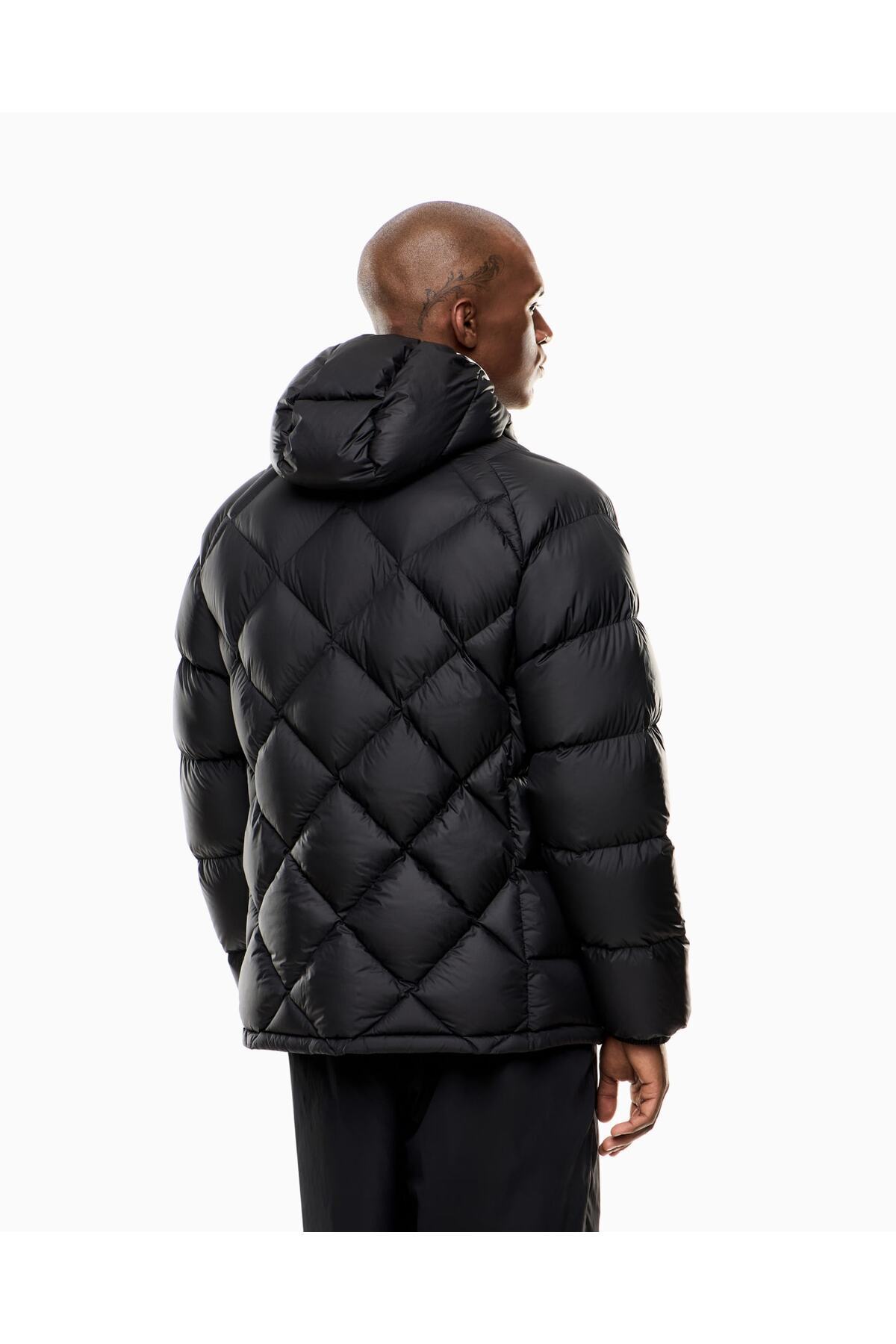 کاپشن مردانه کلاه‌دار لحافی مشکی، ساخته شده از پارچه ضد آب و تنفس‌پذیر، پر شده با پر اردک 7M0010