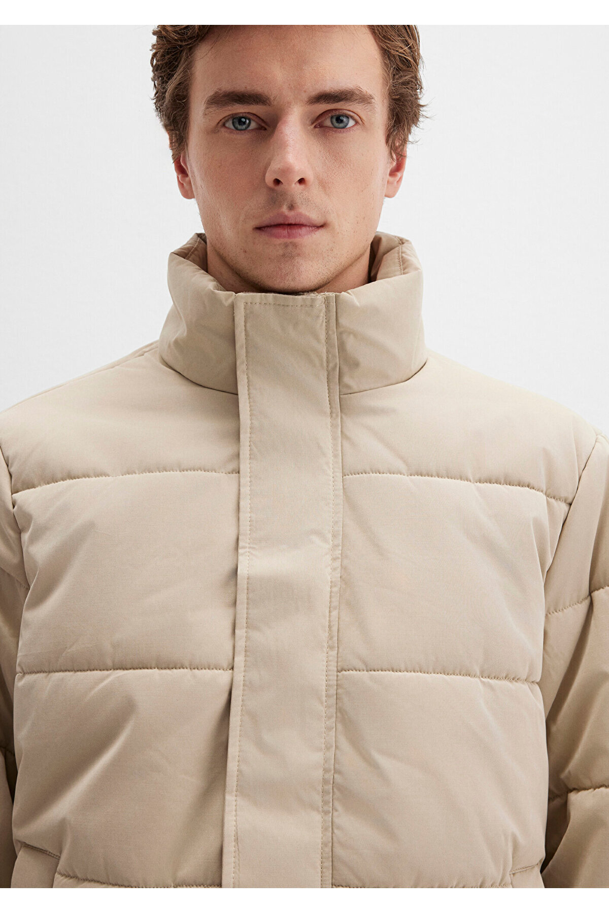 کاپشن پفی یقه ایستاده بژ M0110470-86559