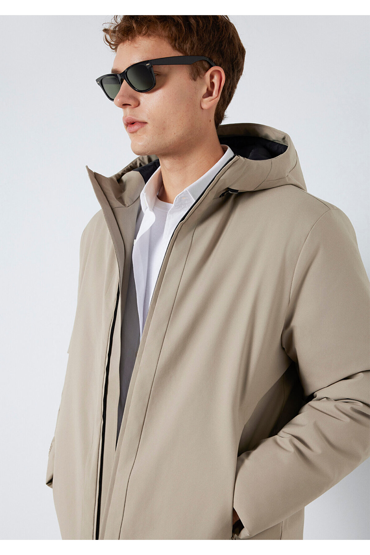 کاپشن خاکی کلاهدار، گشاد / برش آزاد 0110784-80697