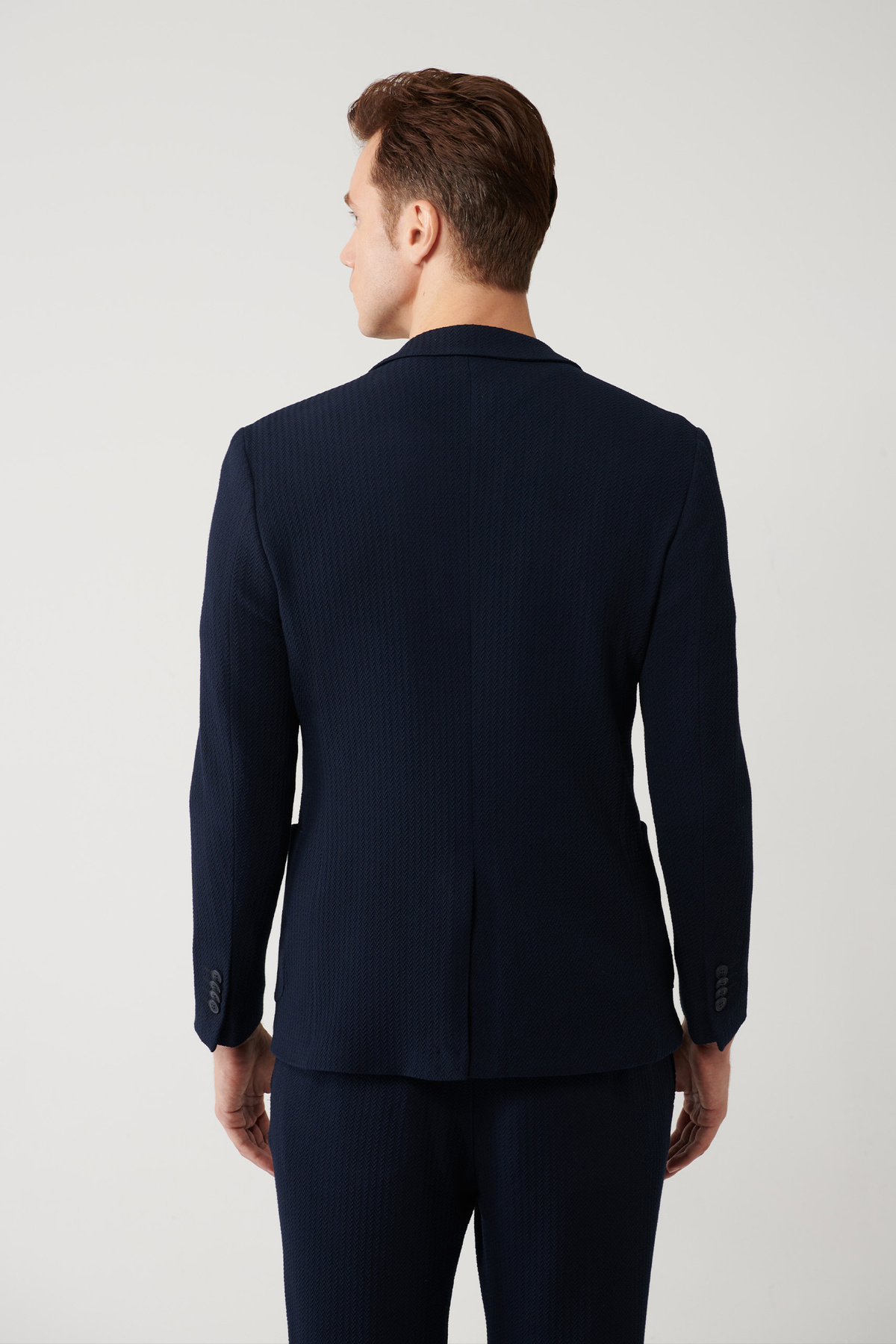 کاپشن مردانه اسلیم فیت، پارچه دو کشسان بدون آستر سرمهای، مدل بلیزر، کد A41Y4032