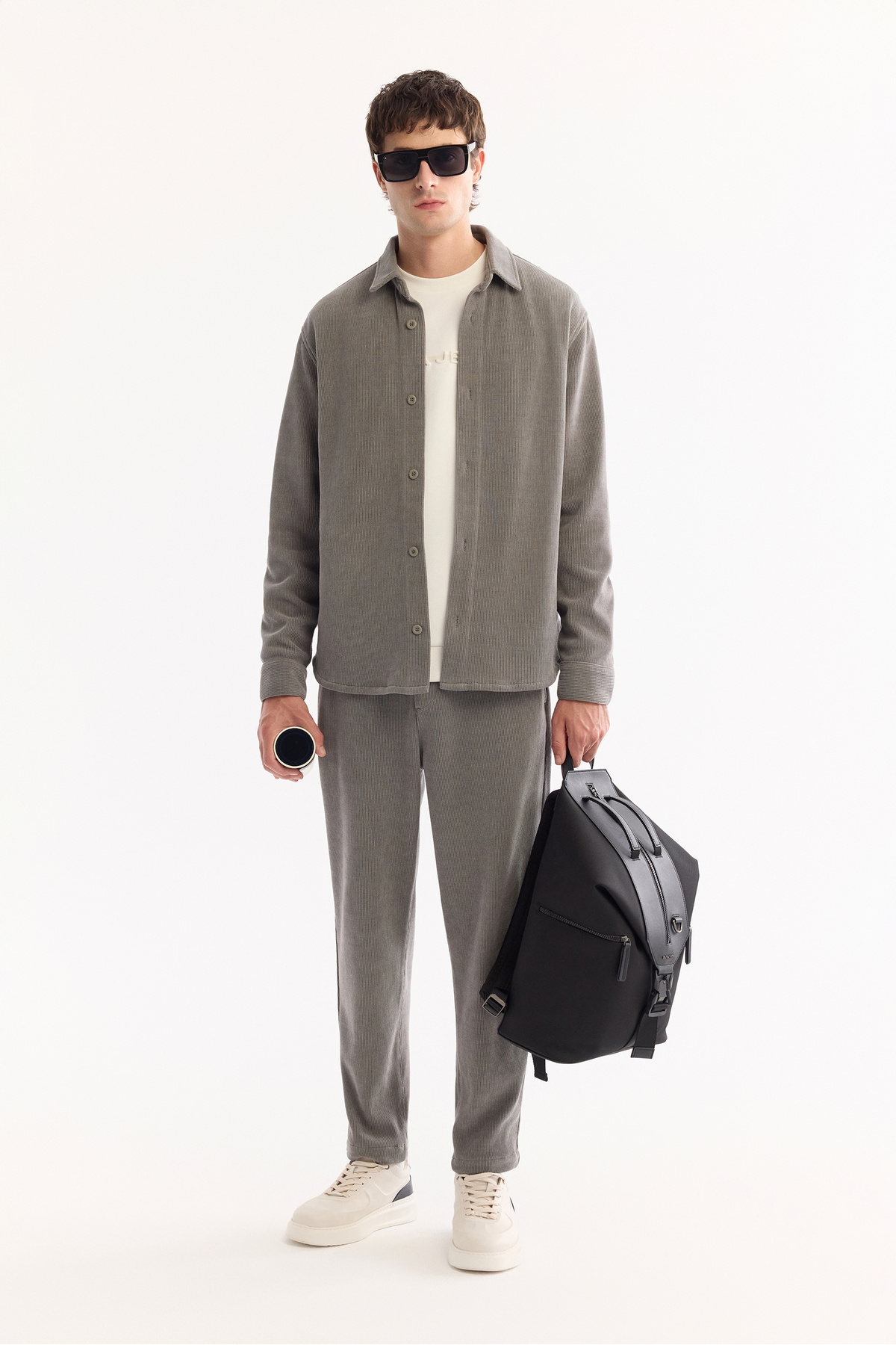 ژاکت پیراهن مردانه یقه کلاسیک خاکستری مخمل مدل A52Y2103