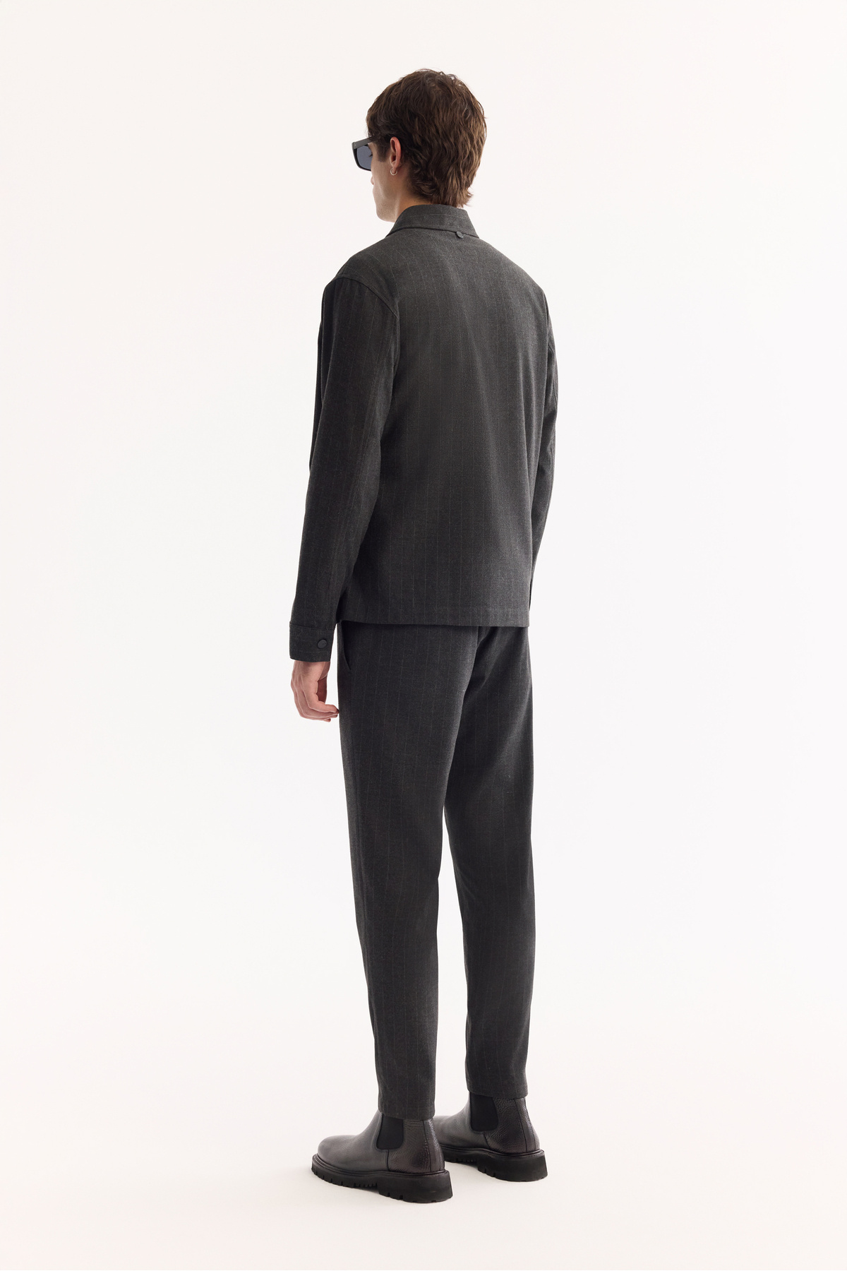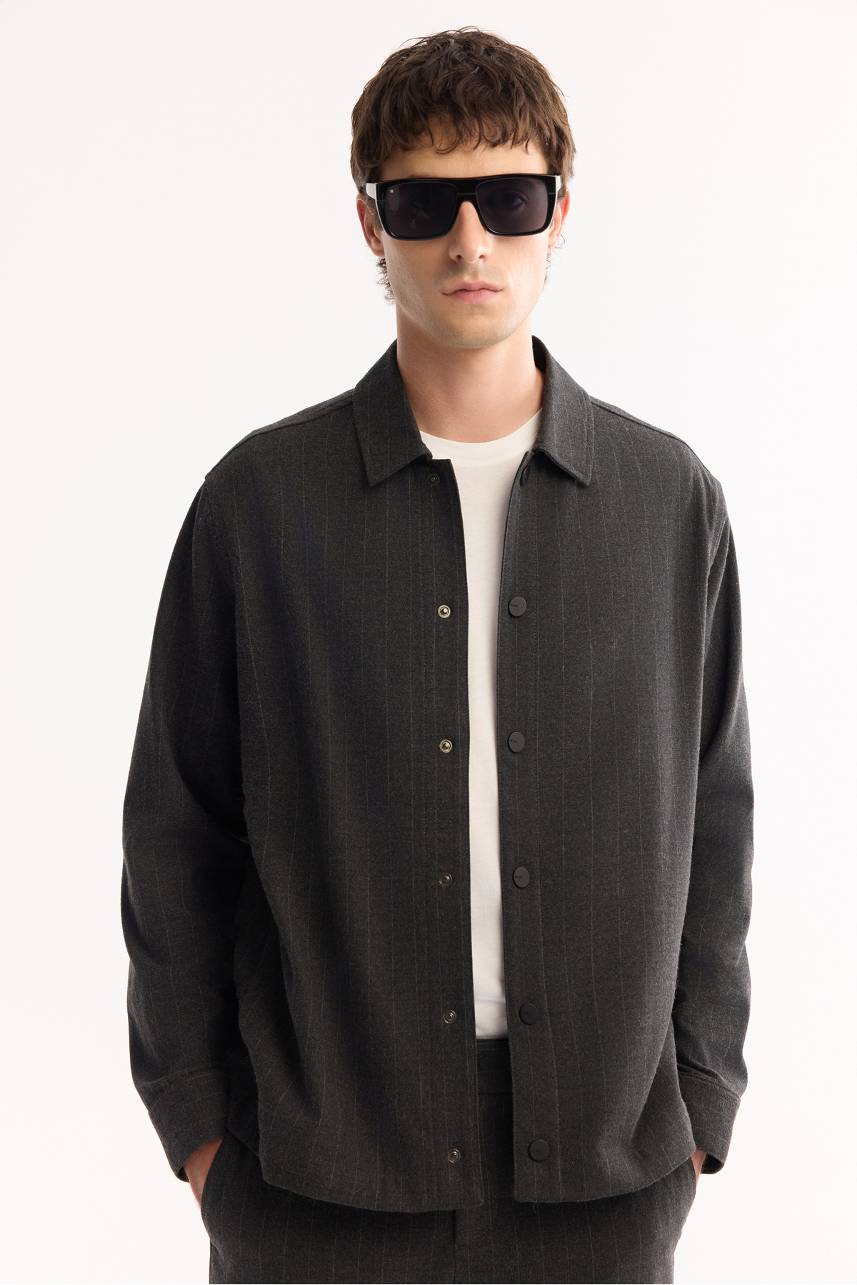 ژاکت پیراهن مردانه یقه کلاسیک آنتراسیت، طرح Easy-Iron، راه راه، راحت، A52Y2018