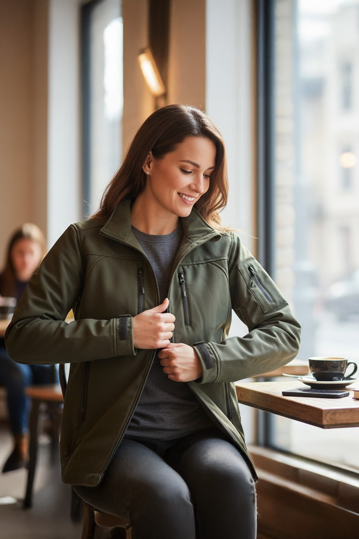 کاپشن خاکی نرم، آستر پشمی، ضد باد و ضد آب