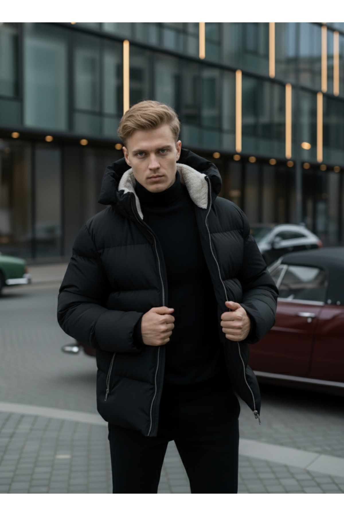 کاپشن مردانه مشکی زمستانی، ضد آب و مقاوم در برابر سرما، کاپشن آستردار خزدار، پالتو مردانه