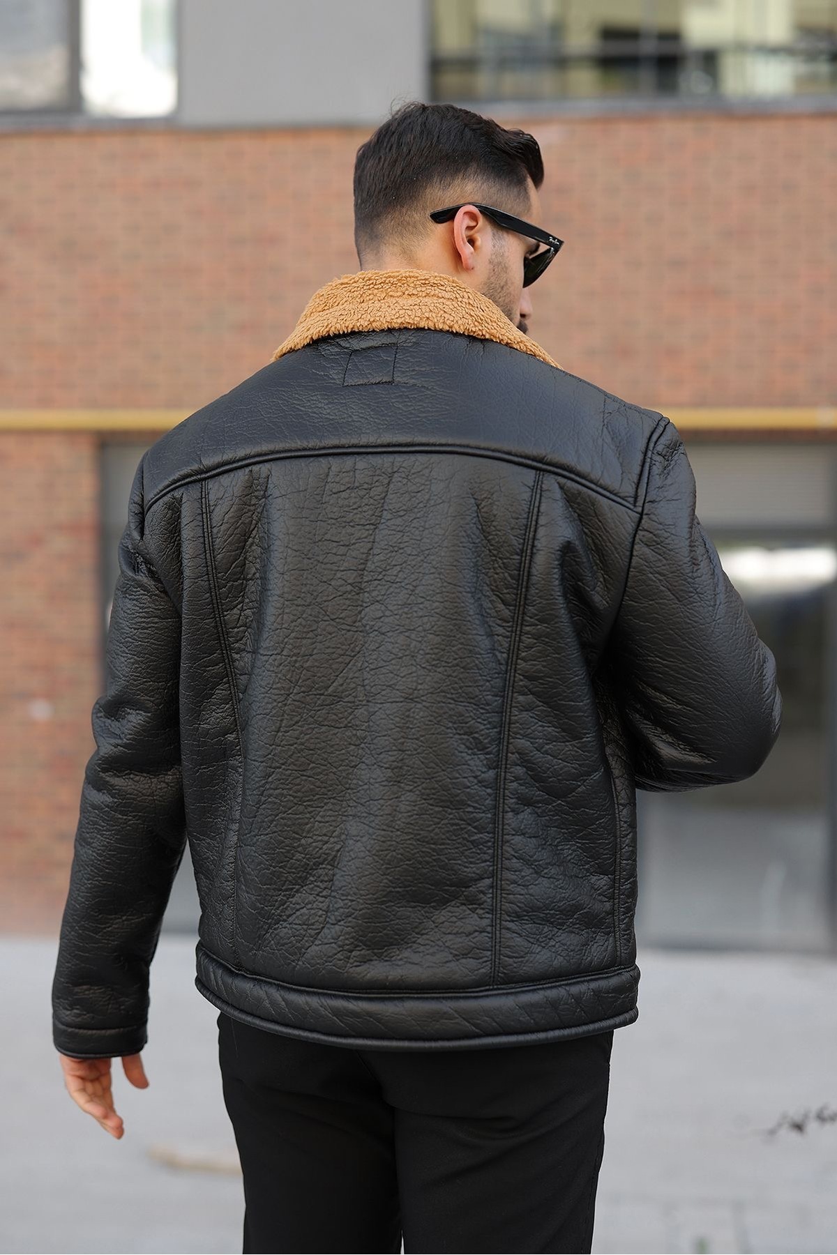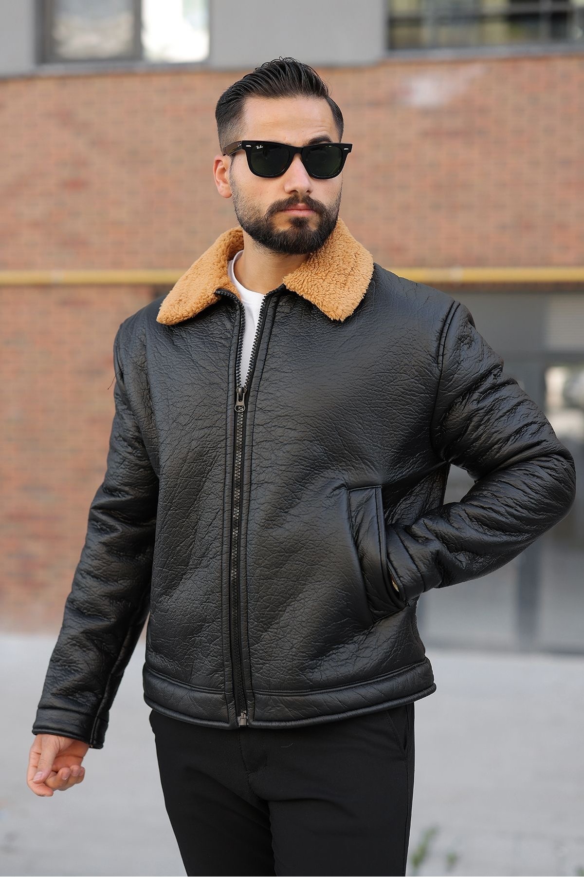 کاپشن چرمی زمستانی مردانه تماماً خزدار
