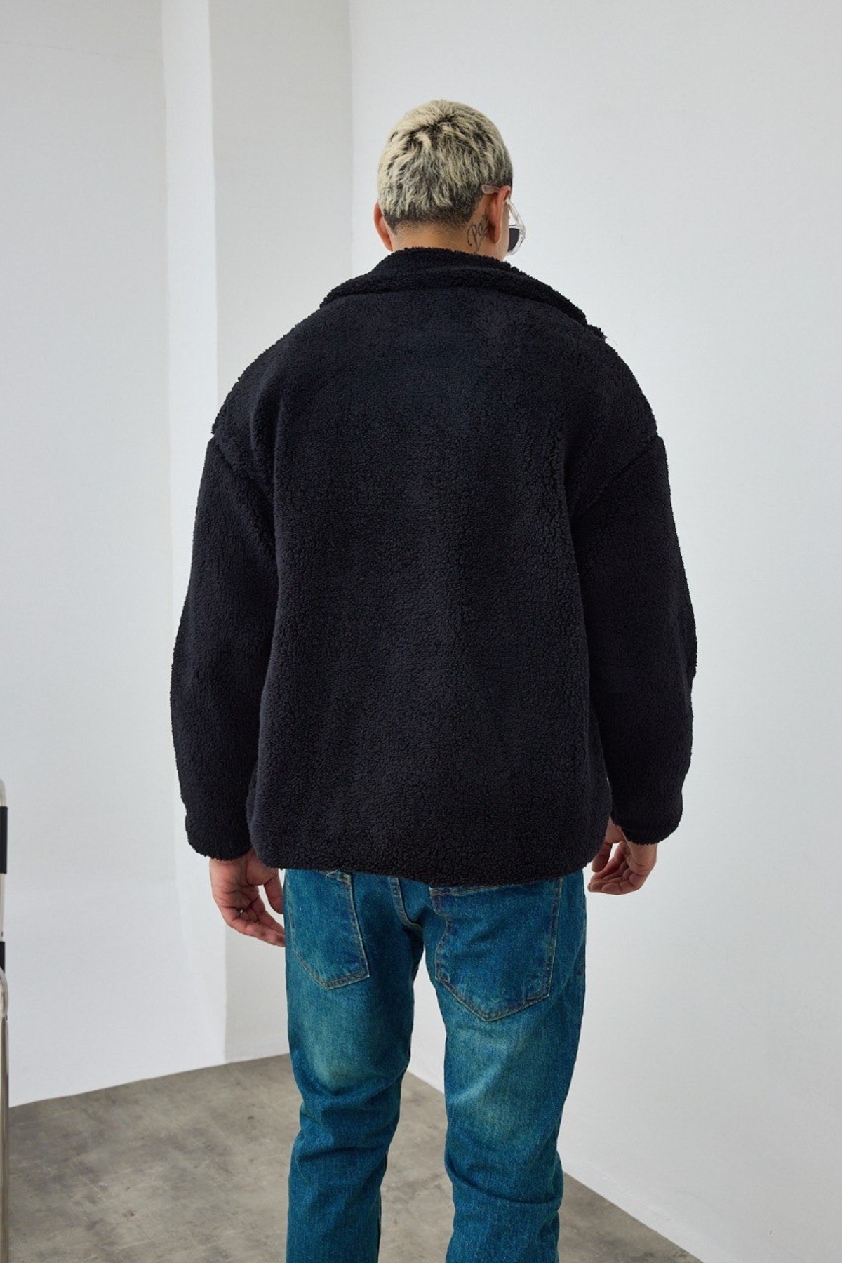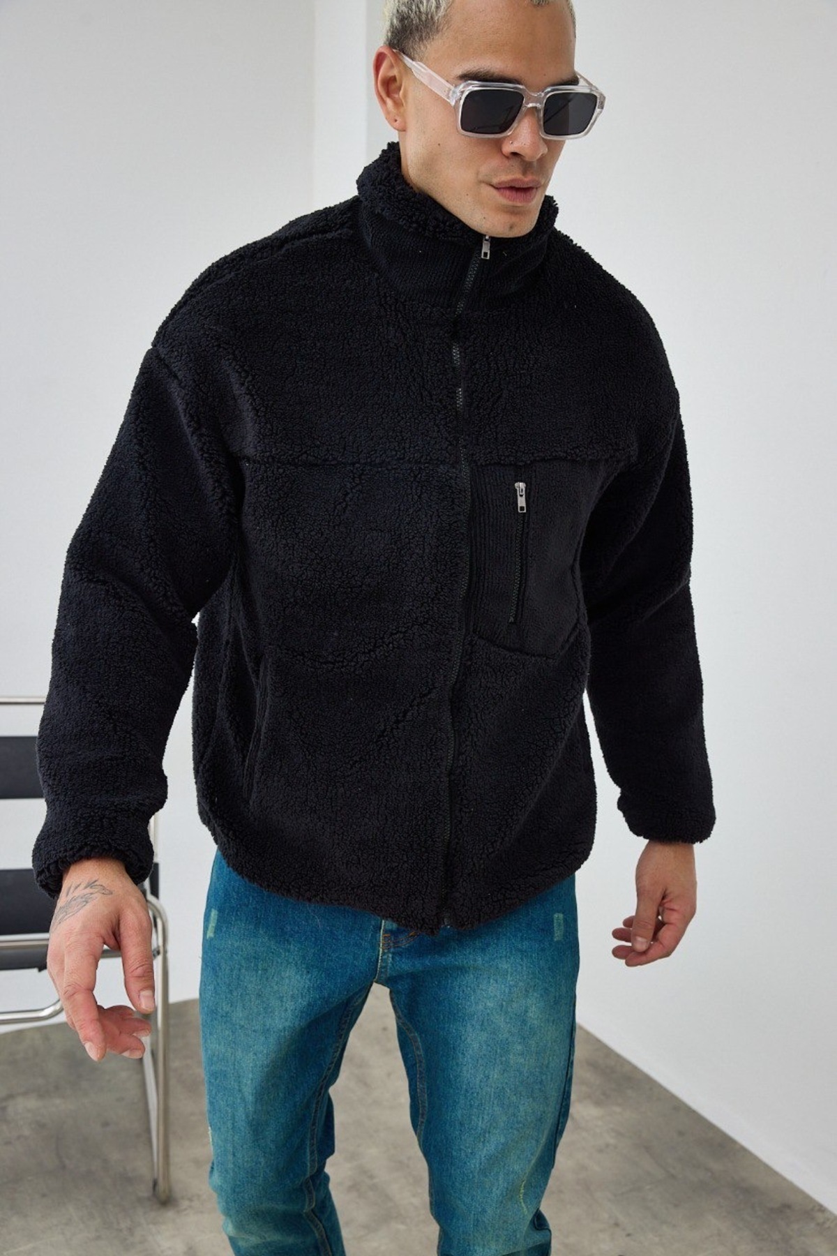 کاپشن مخمل مشکی مردانه ممتاز با جزئیات جیب LS-86076