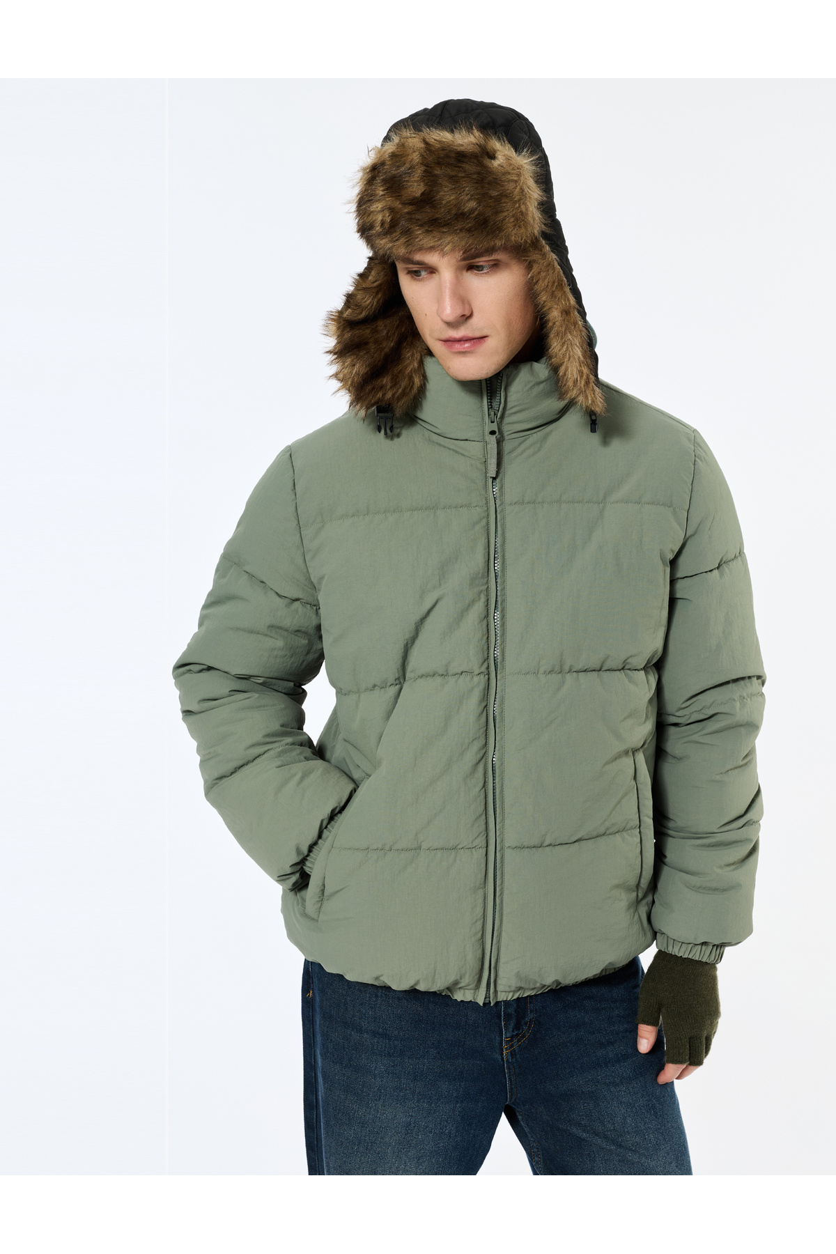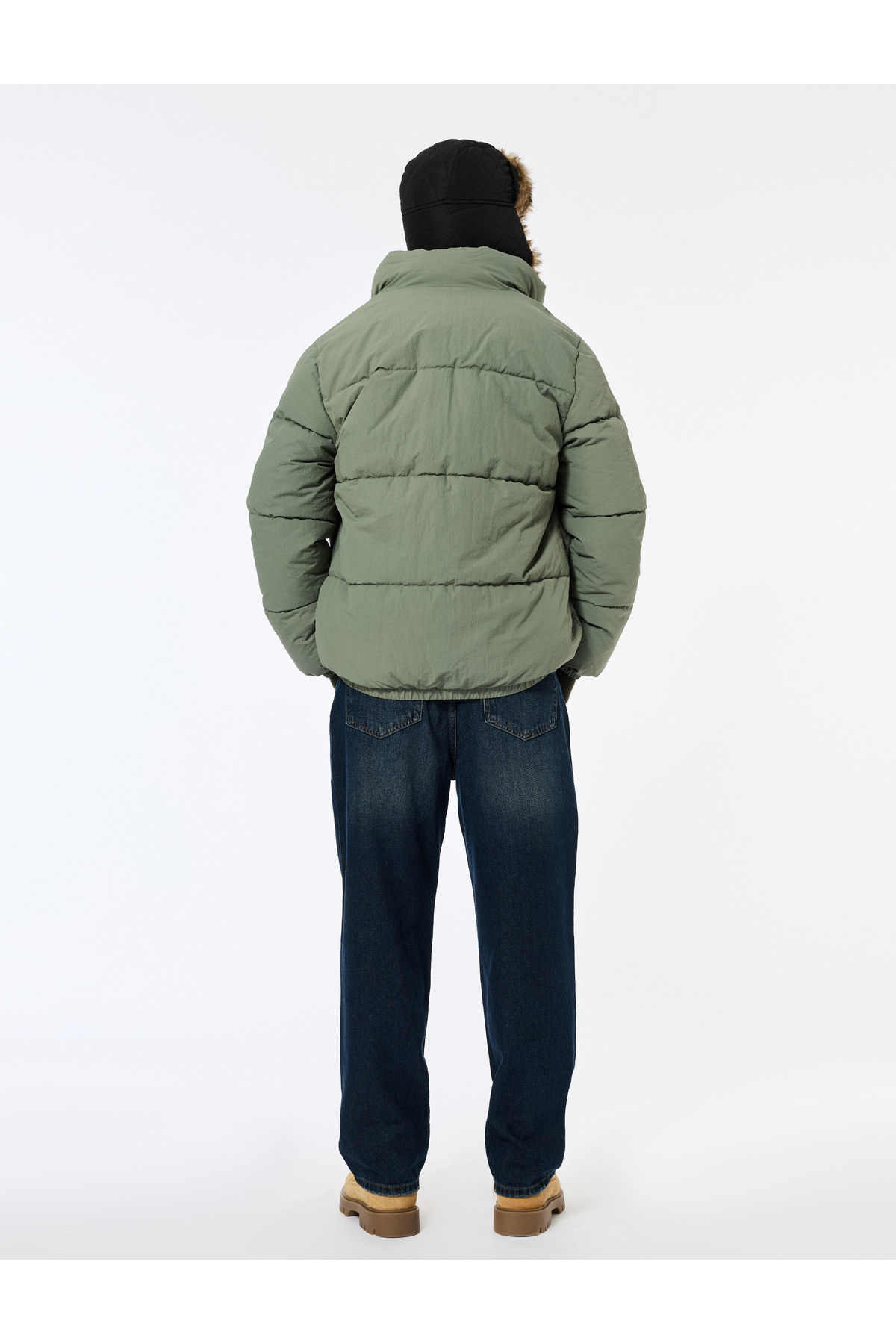 کاپشن پفی زمستانی یقه بلند با جیب و زیپ.