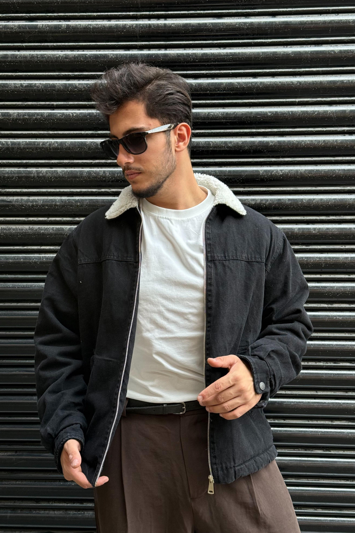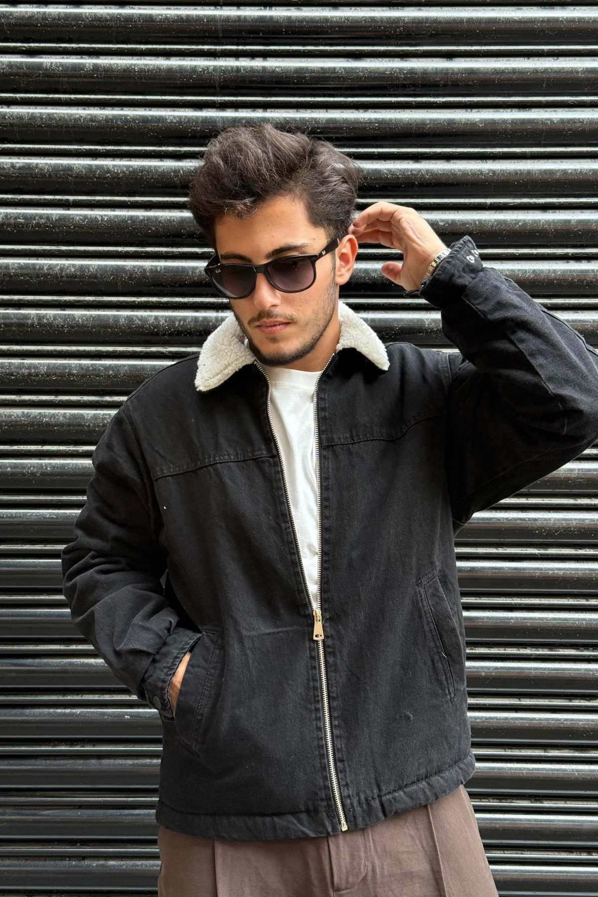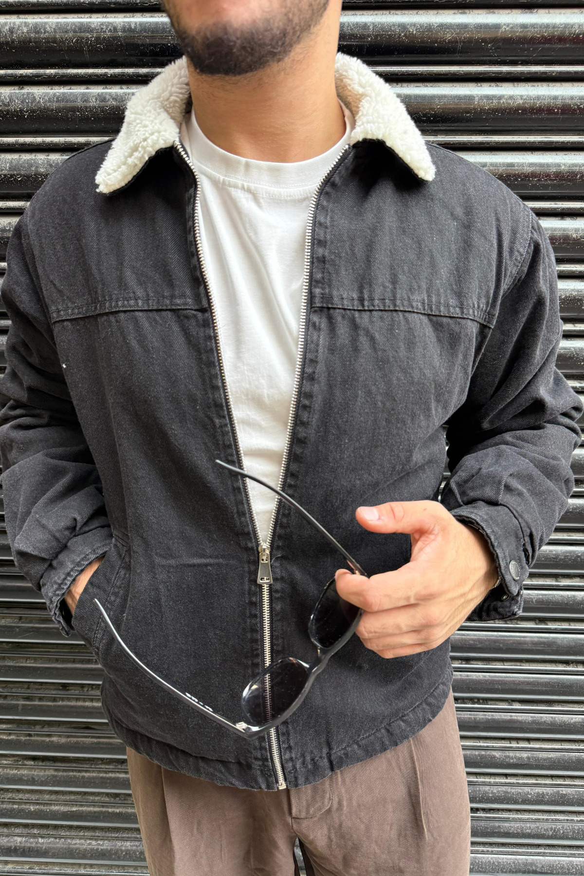 کاپشن جین مردانه زیپ‌دار با آستر خز