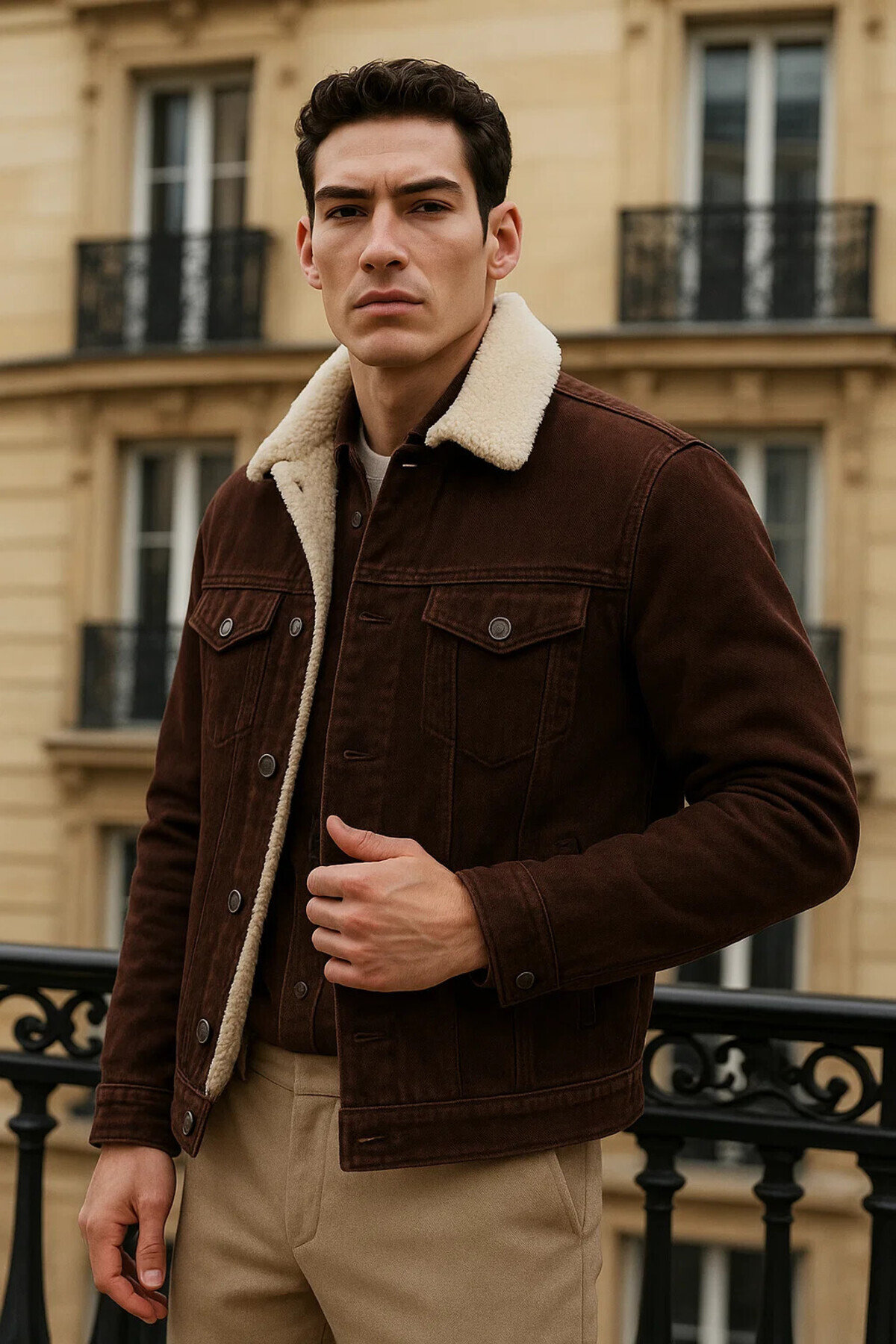 کاپشن راحتی زمستانی مردانه با آستر خز مخمل، جین قهوهای تیره
