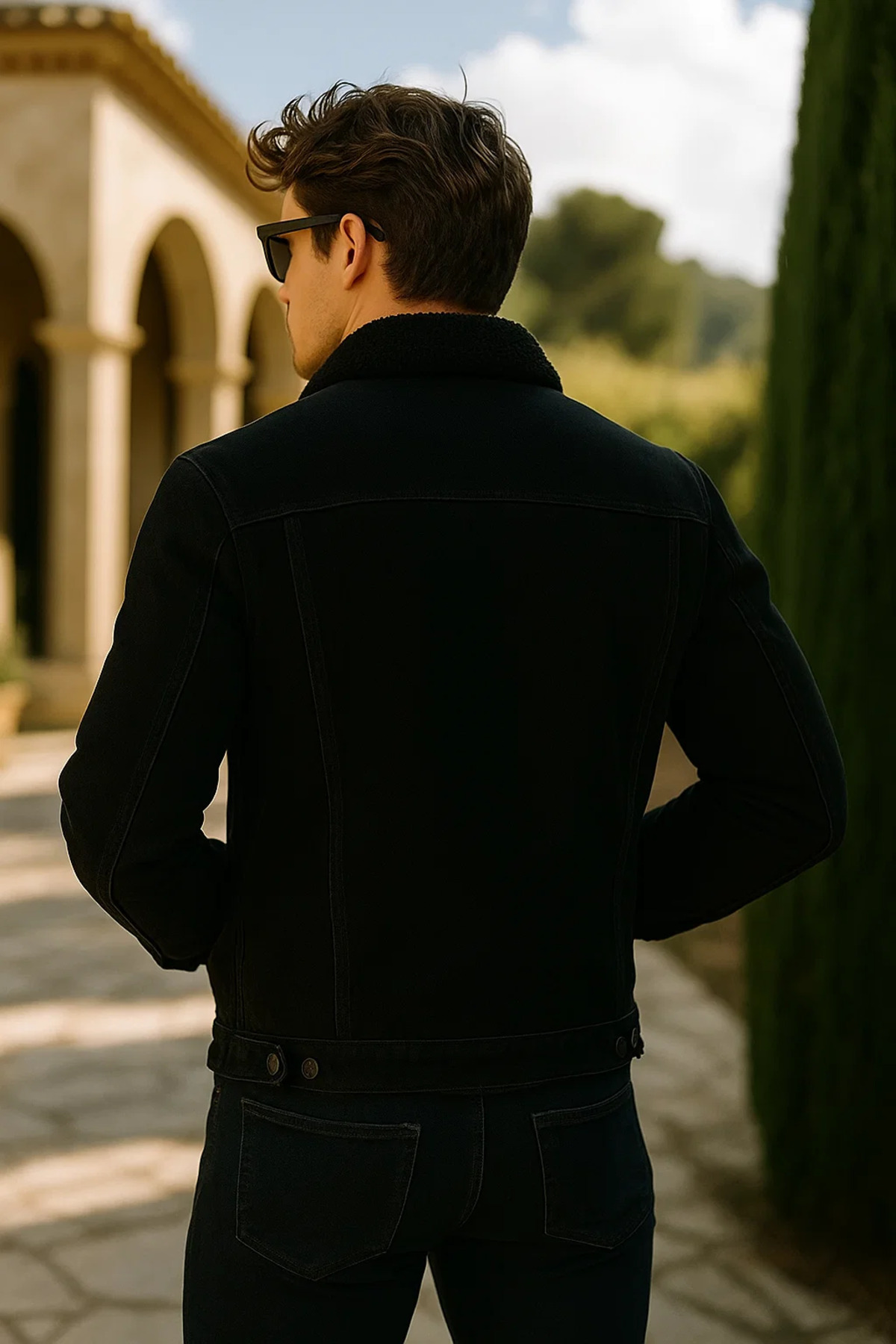 کاپشن جین مشکی مردانه با آستر خز، مناسب زمستان و راحتی