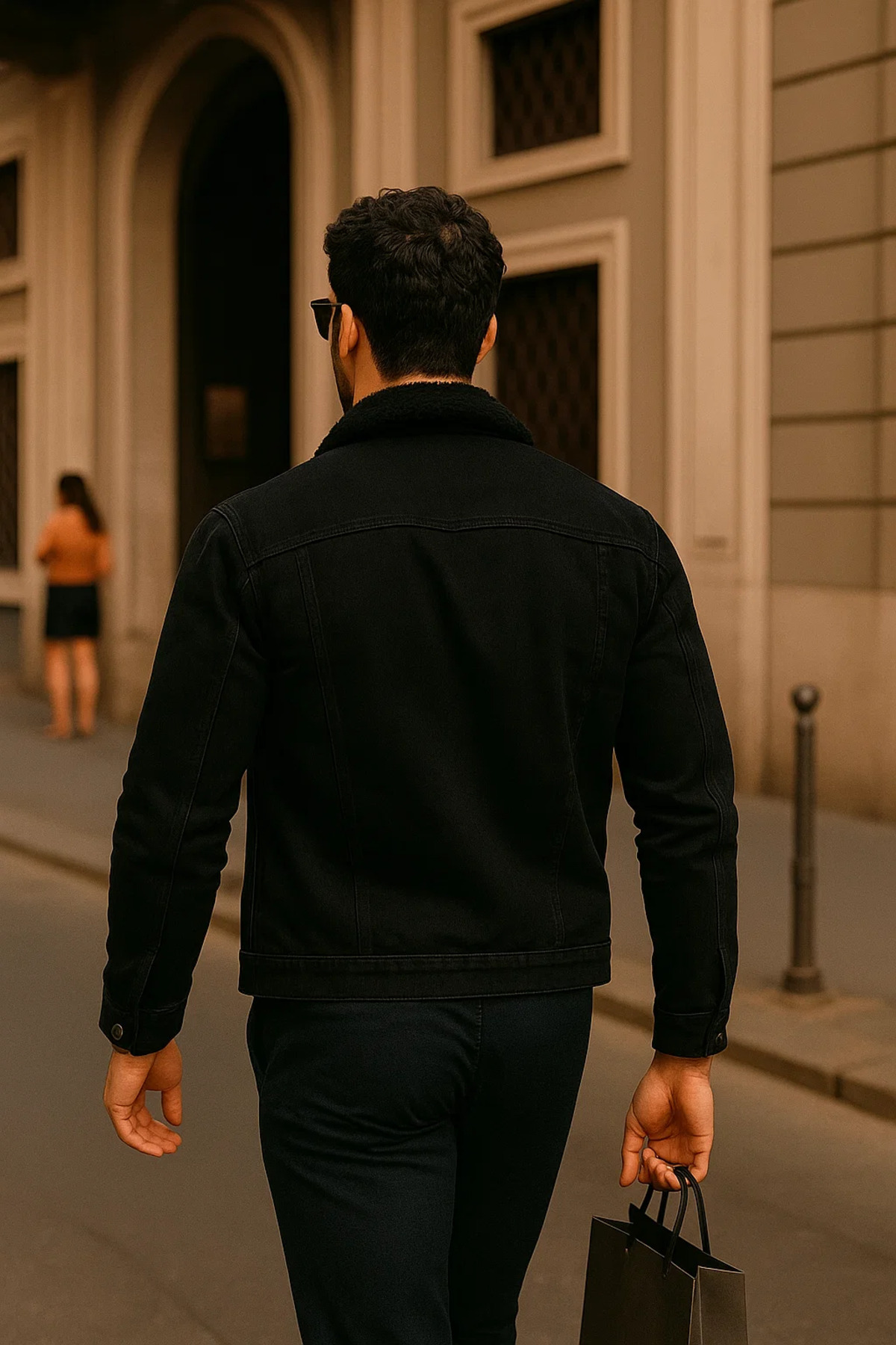 ژاکت جین مشکی کلاسیک زمستانی مردانه با آستر خز