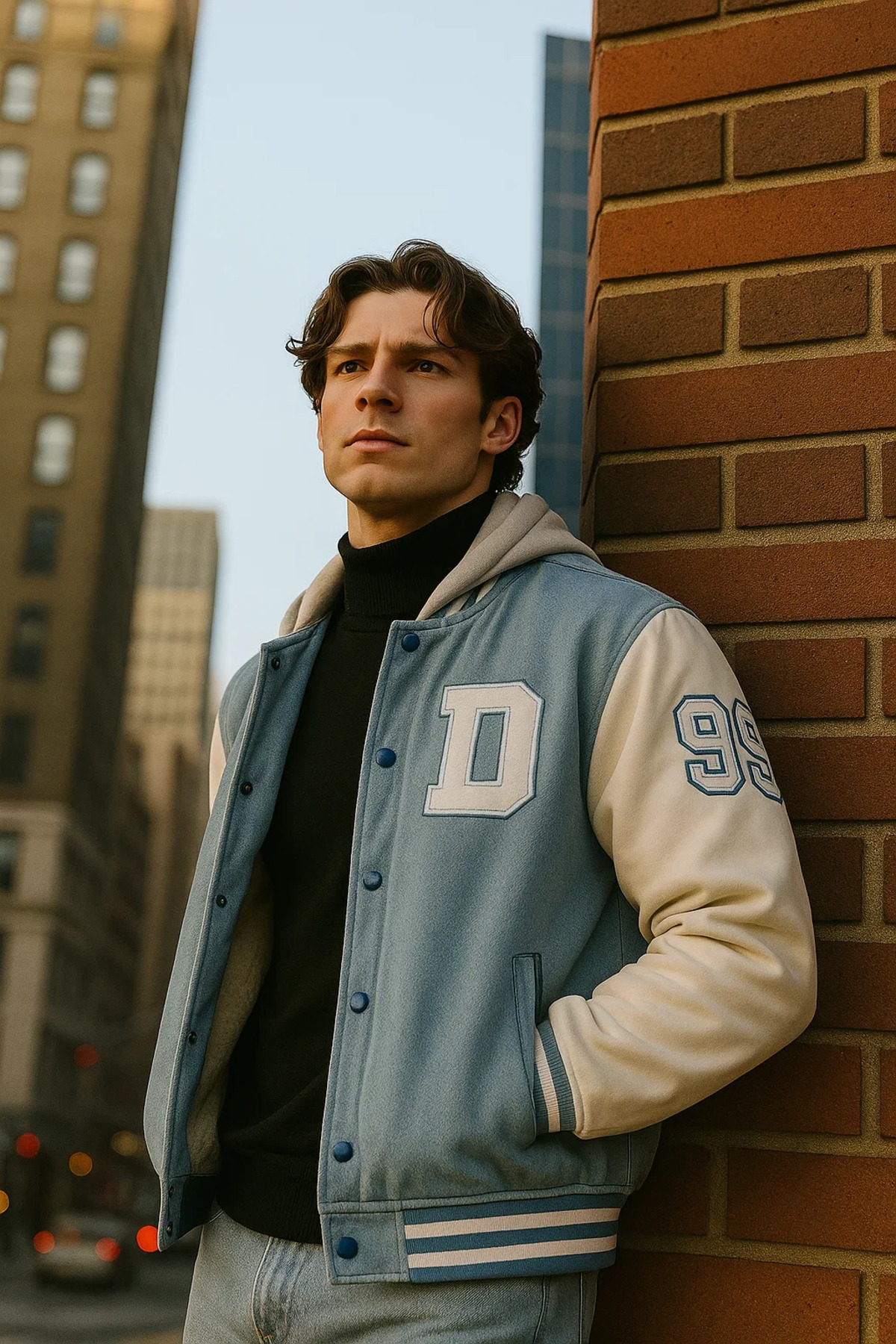 ژاکت کالج مردانه کلاه دار جین سرمه ای تیره