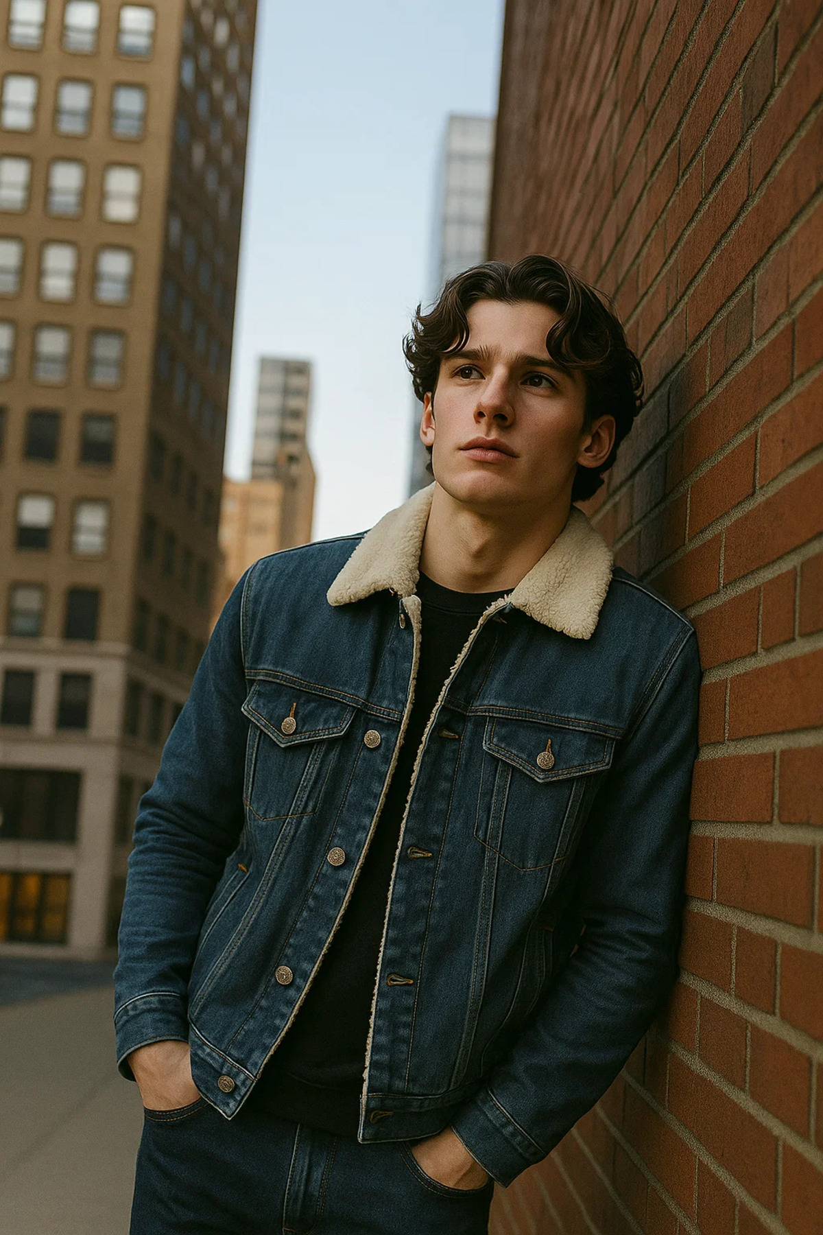 پیراهن یقه دار مردانه با آستر خز، ژاکت جین آبی