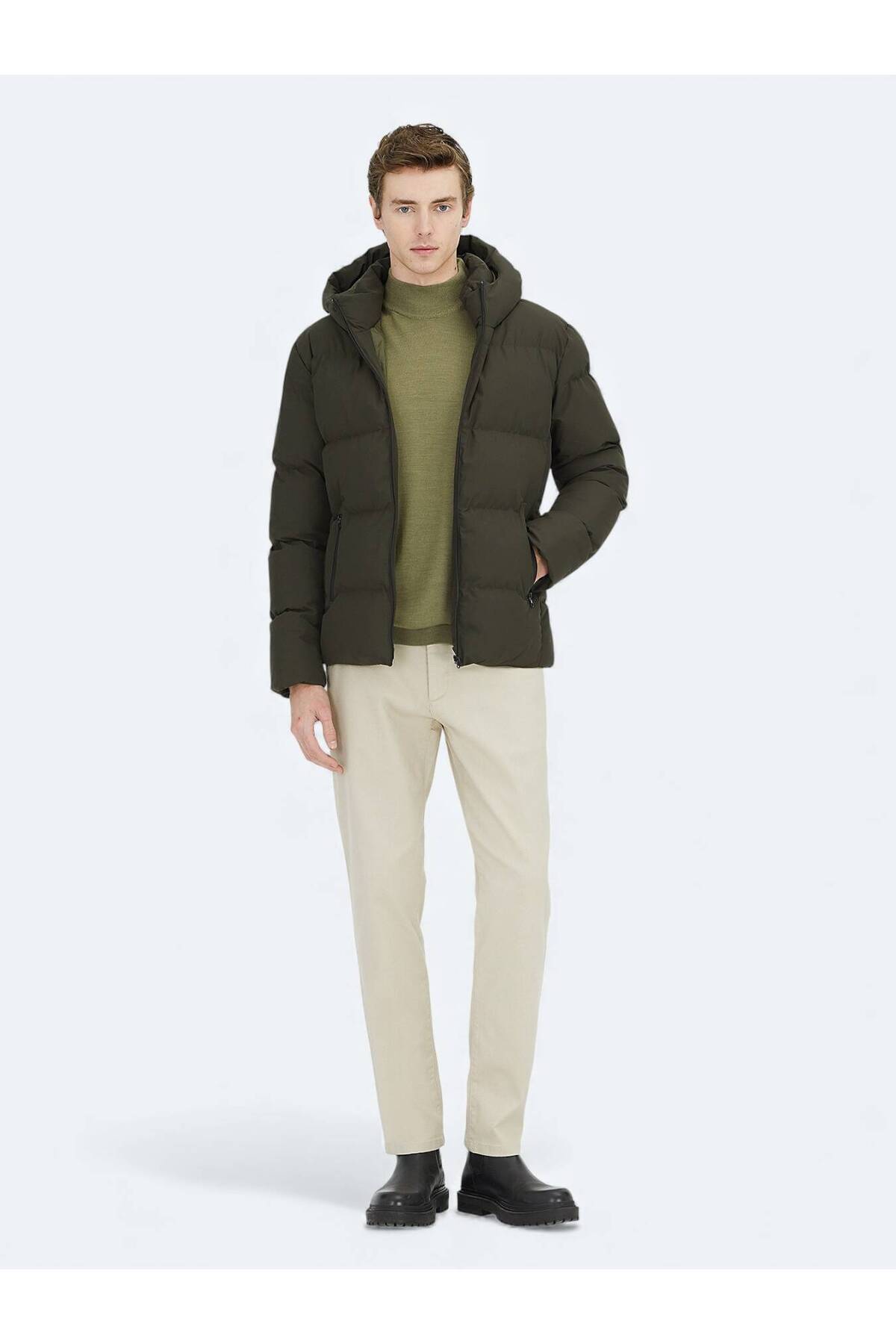 ژاکت بافتنی کلاهدار خاکی معمولی