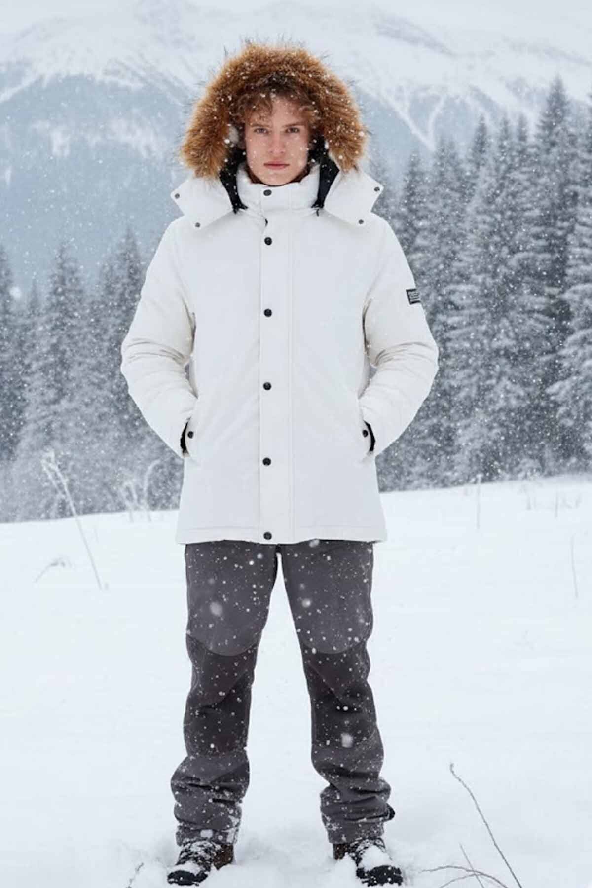 ژاکت کلاهدار مردانهی سفید مایل به کرم