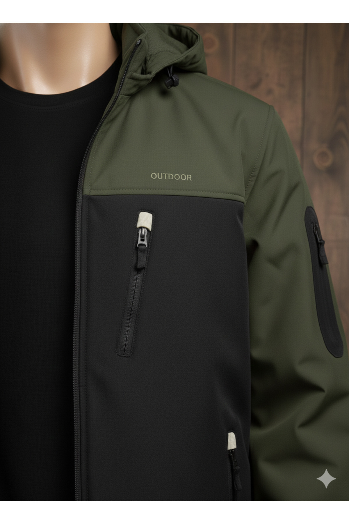 کاپشن مردانه کلاهدار نرم – ضد آب و باد – خاکی-مشکی