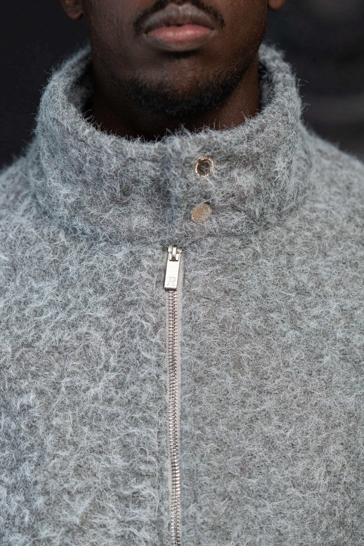 کاپشن خاکستری روشن آستردار سایز بزرگ با جیبهای کناری