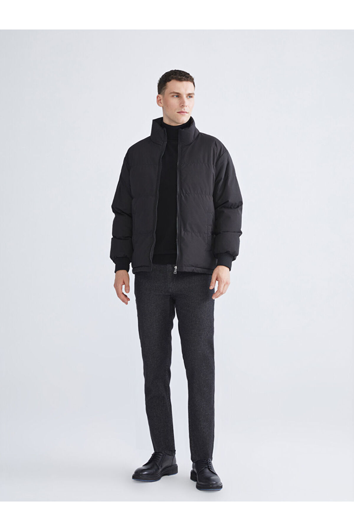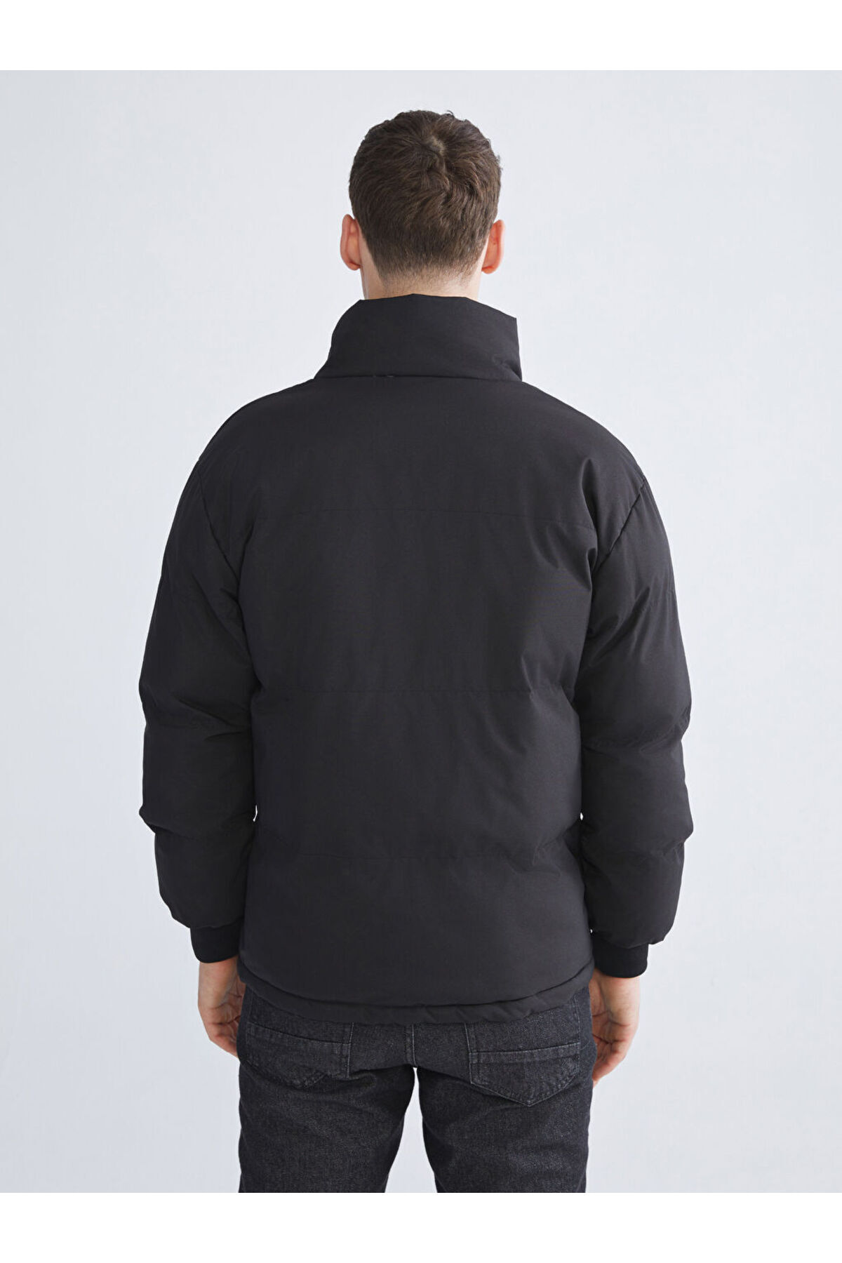 کاپشن پفی مردانه مشکی یقه ایستاده استاندارد فیت