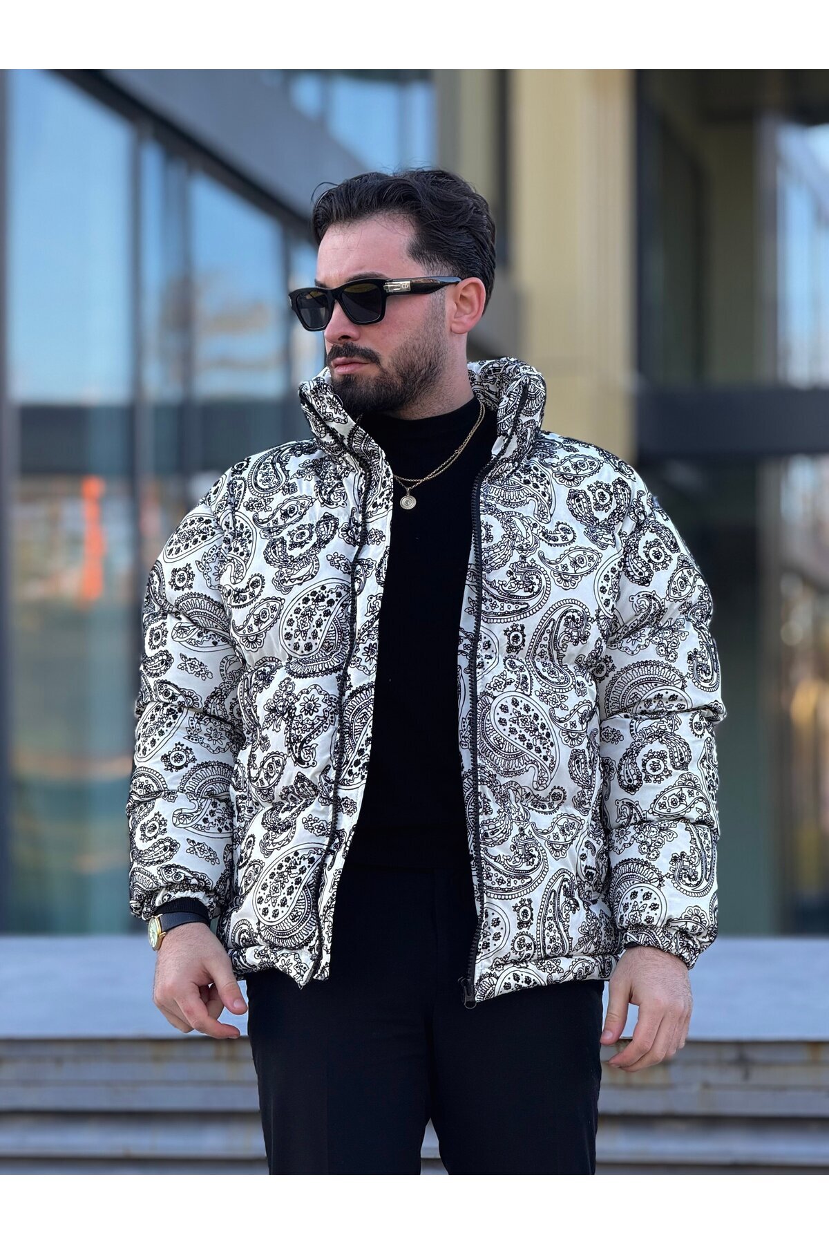 کاپشن مردانه یقه ایستاده طرح گله زمستانی