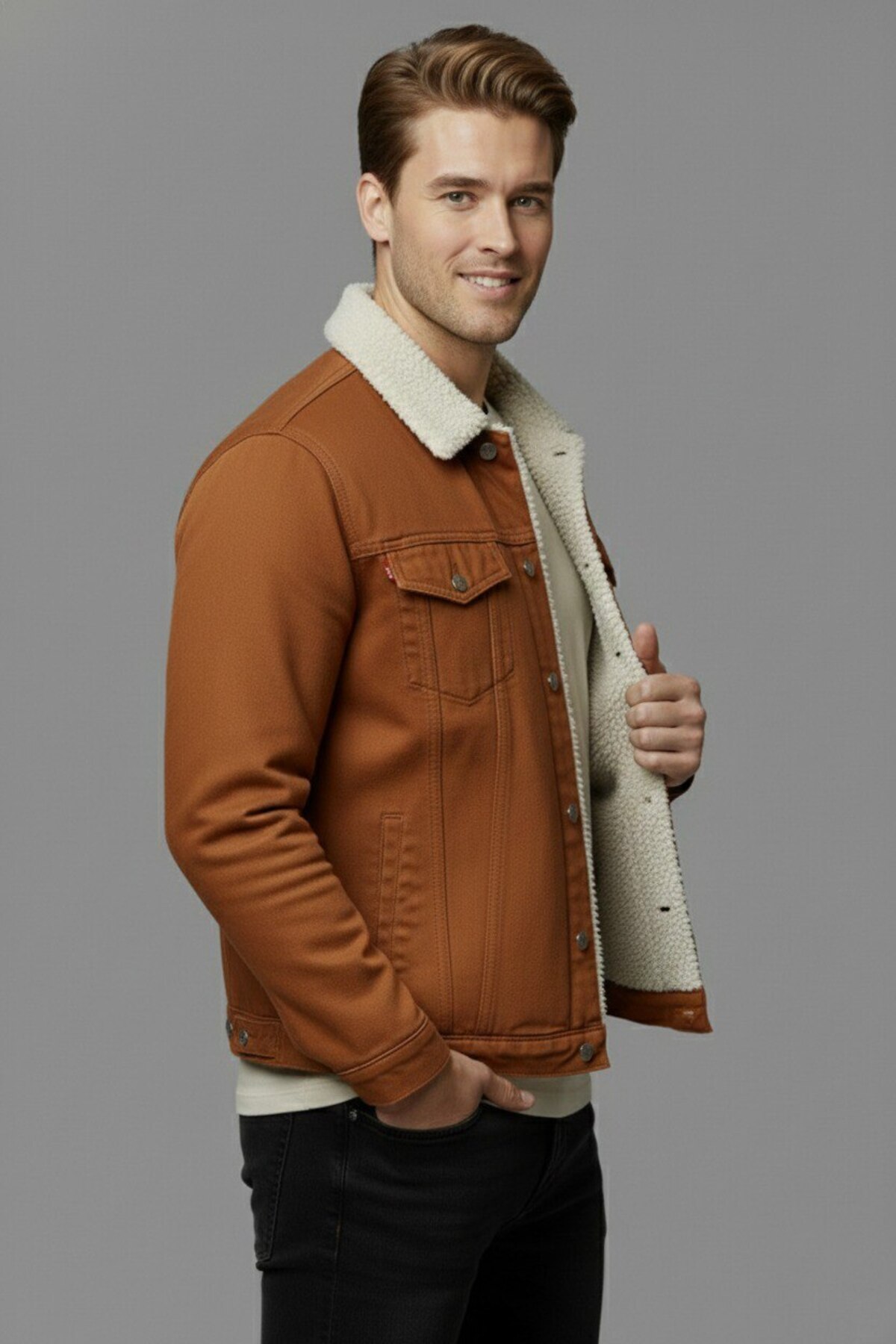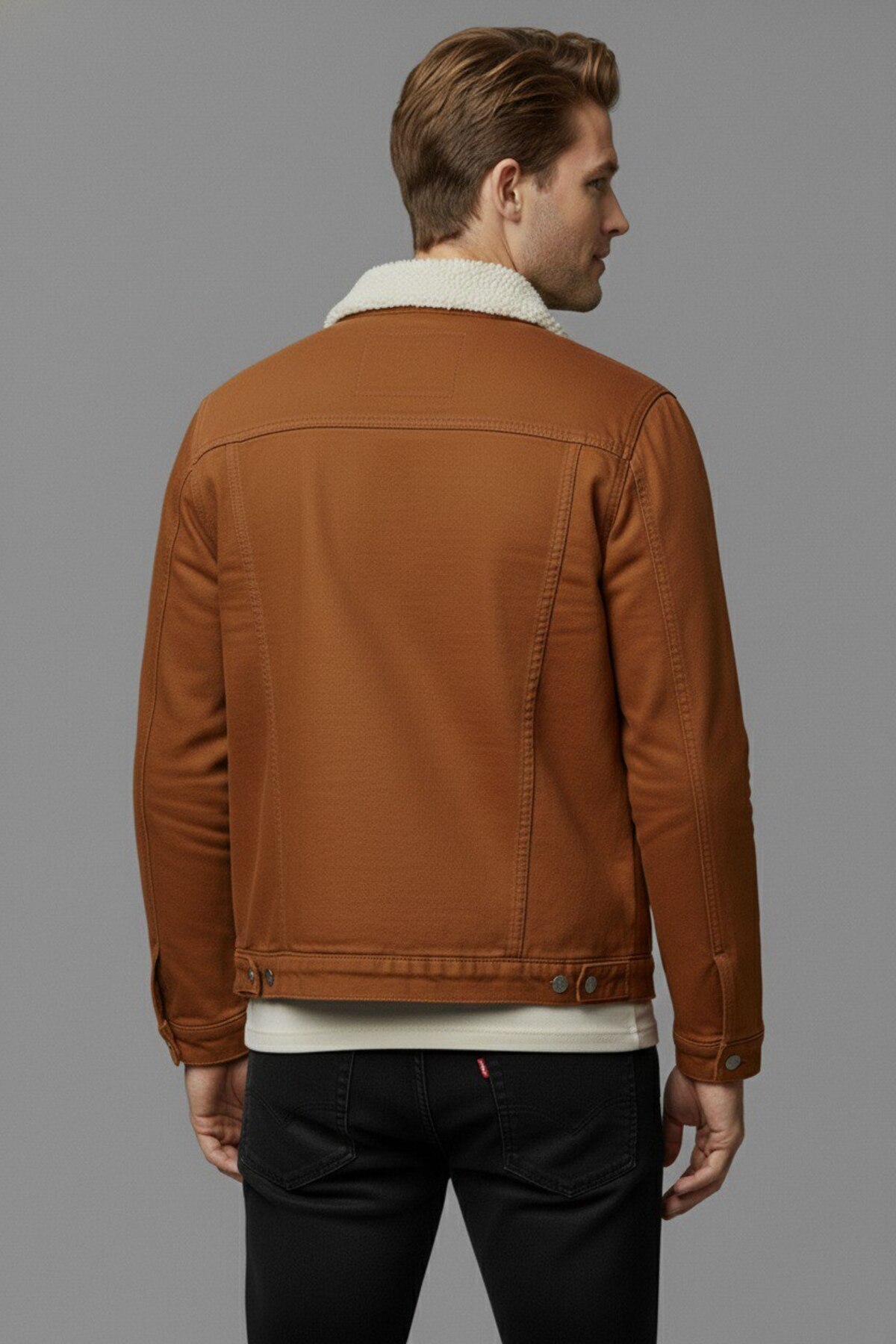 ژاکت جین مردانه با آستر خز استاندارد سایز فیت