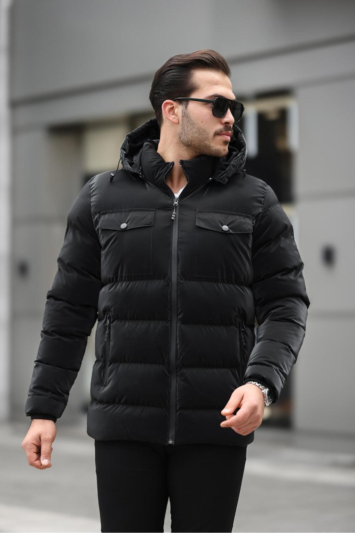کاپشن پفی یقه ایستاده کلاه دار مردانه برای فصل جدید