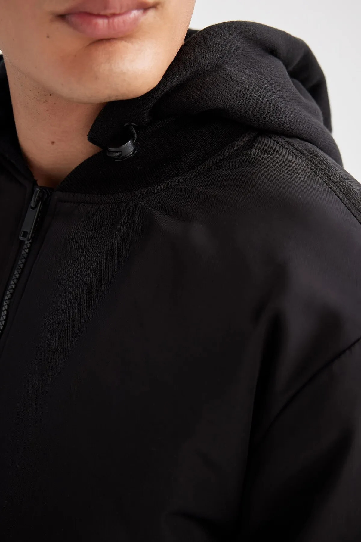 کاپشن بمبر فصلی سبک، باریک، کلاه دار جداشونده، زیپ دار، دو جیب