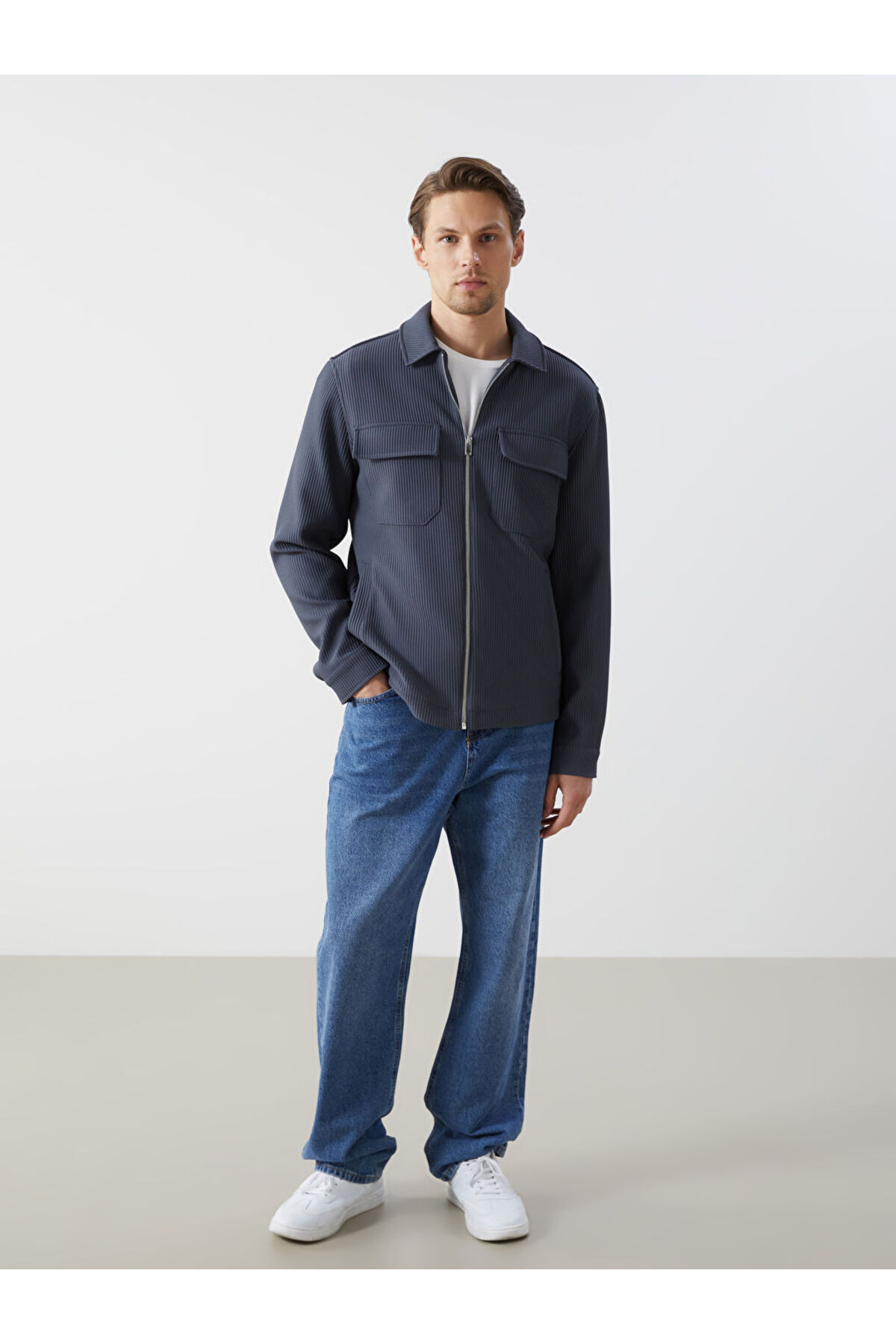 ژاکت مردانه یقه پیراهن اسلیم فیت ایندیگو