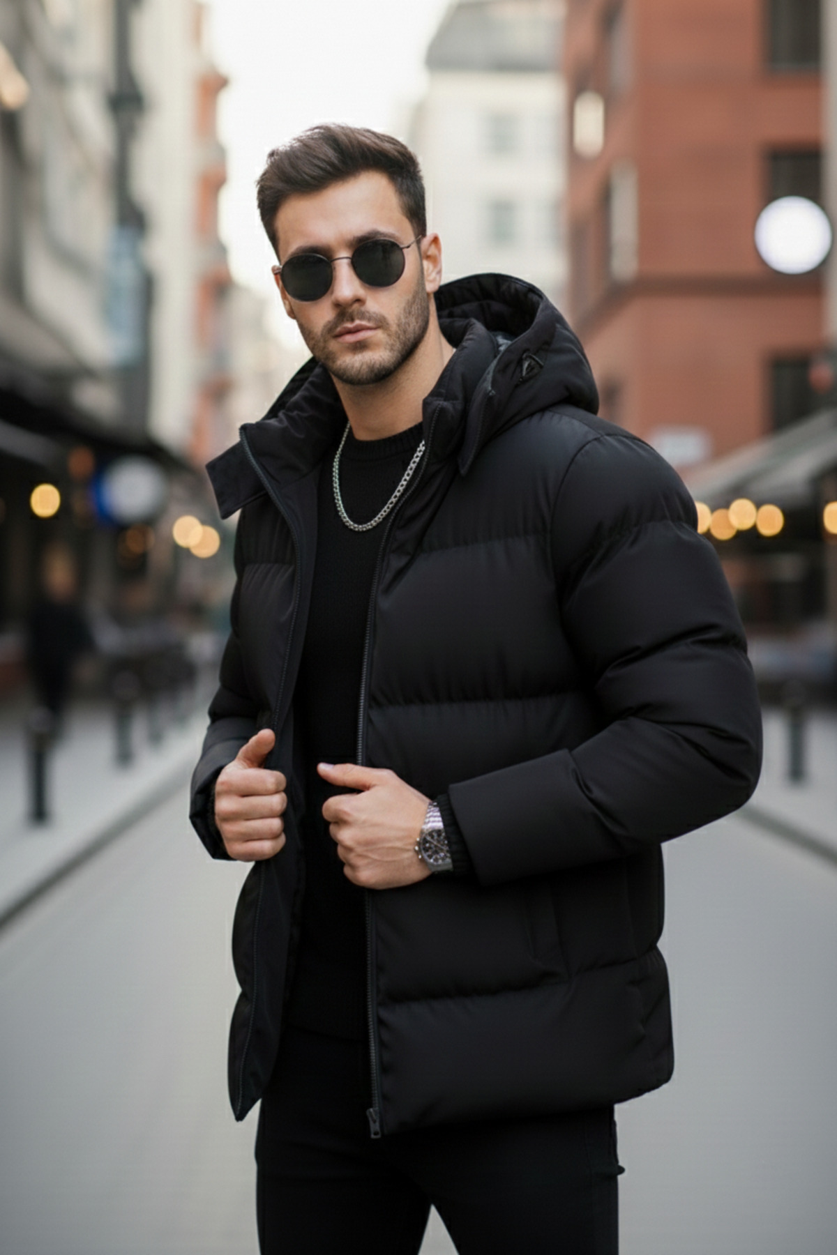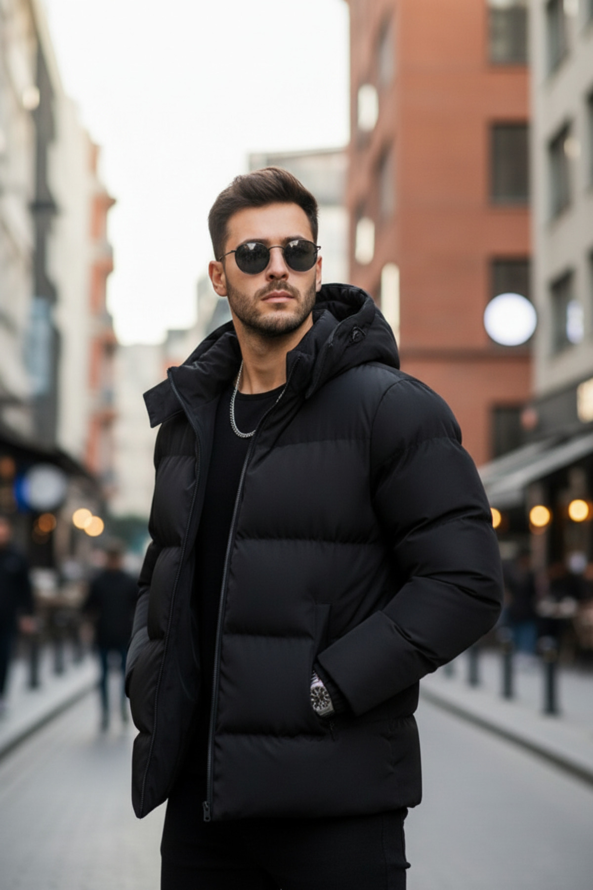 کاپشن پفی مشکی فصل جدید با کلاه جداشونده