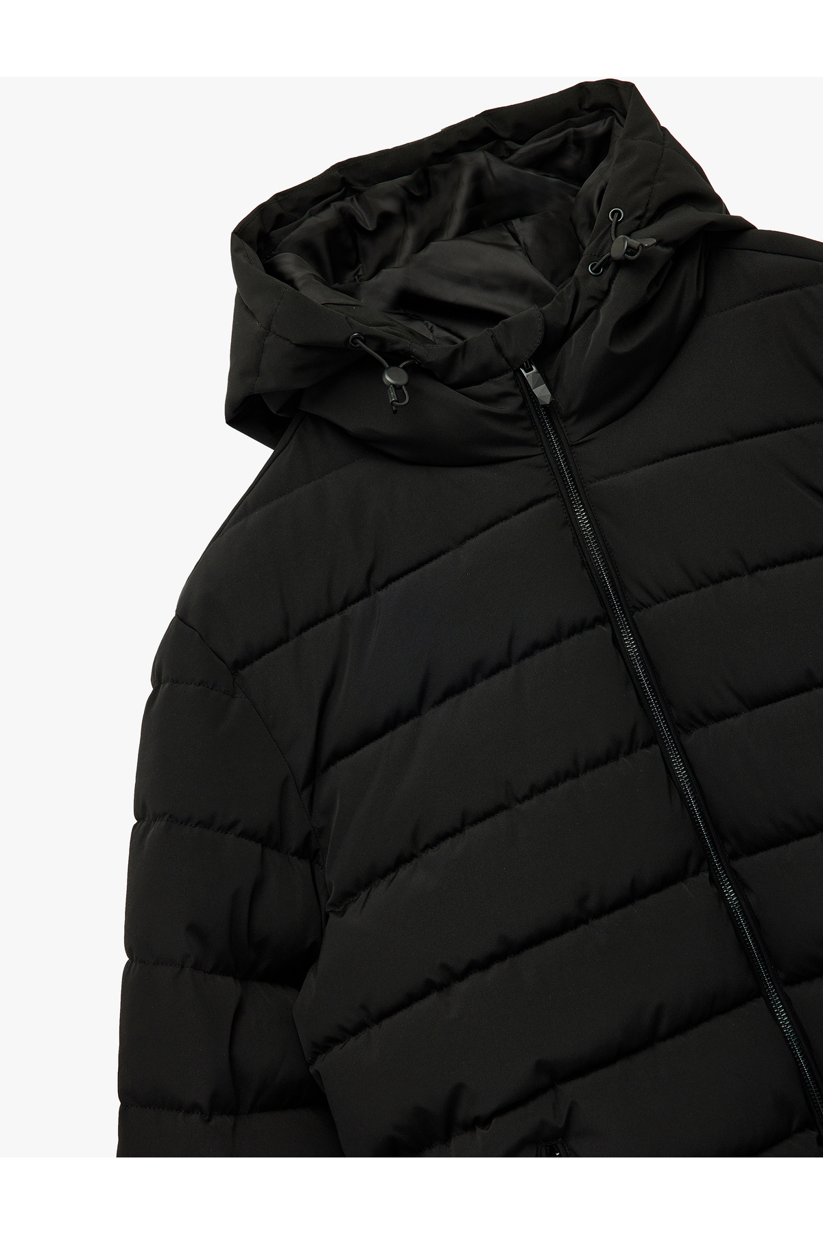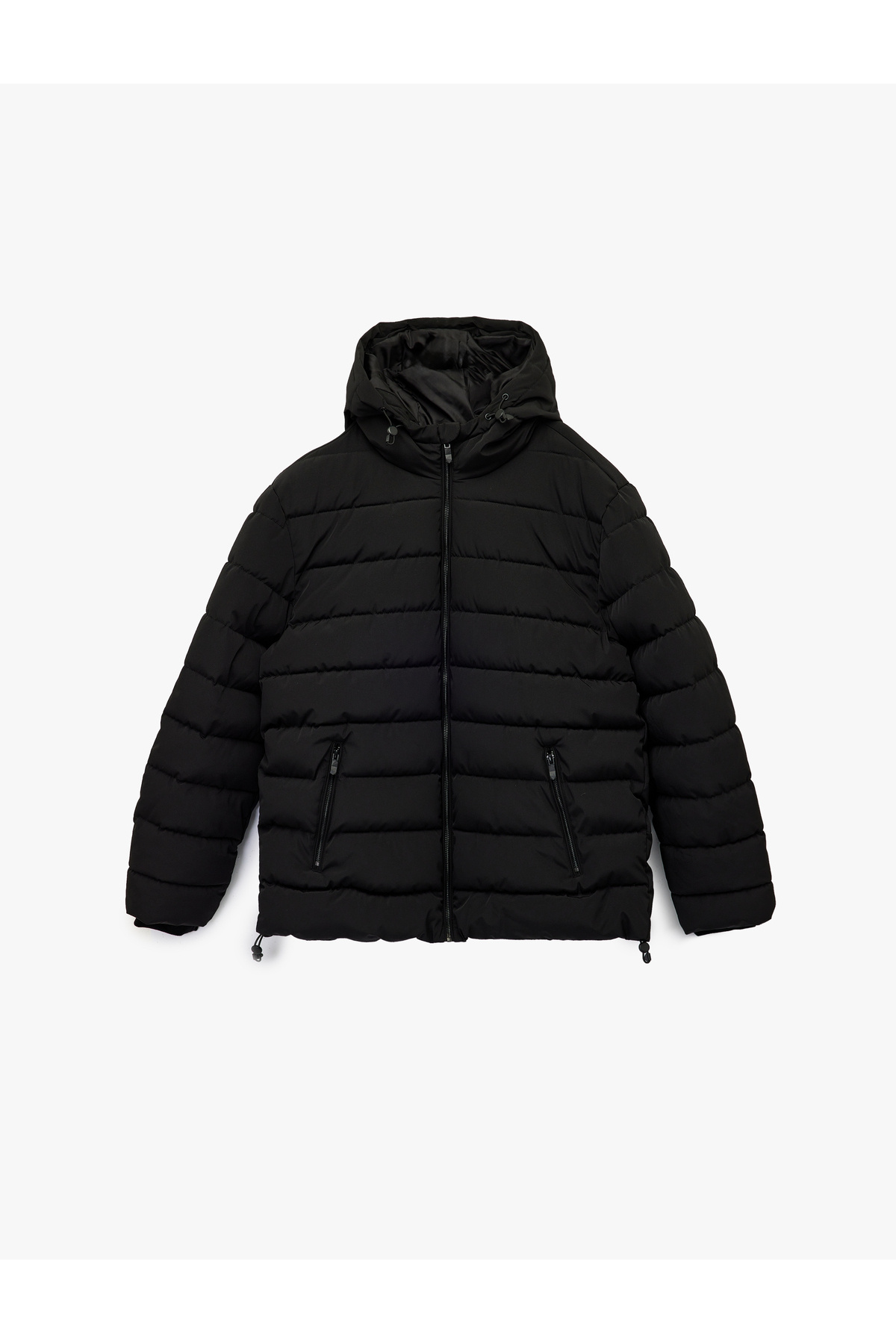 کاپشن پفی زمستانی، کلاه دار، آستین بلند، زیپ دار و جیب دار.