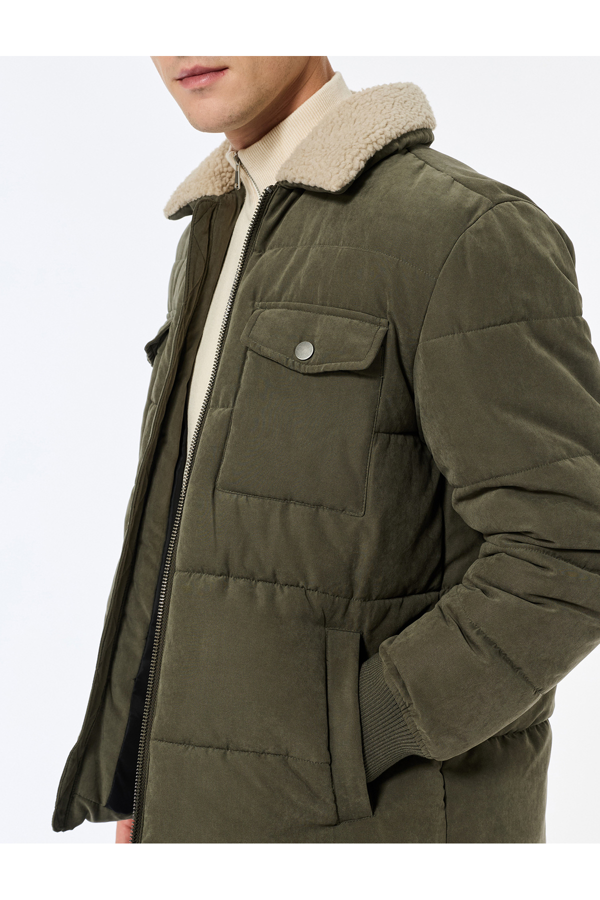 کت زمستانی آستین بلند با جیب، زیپ و یقهی مخمل.