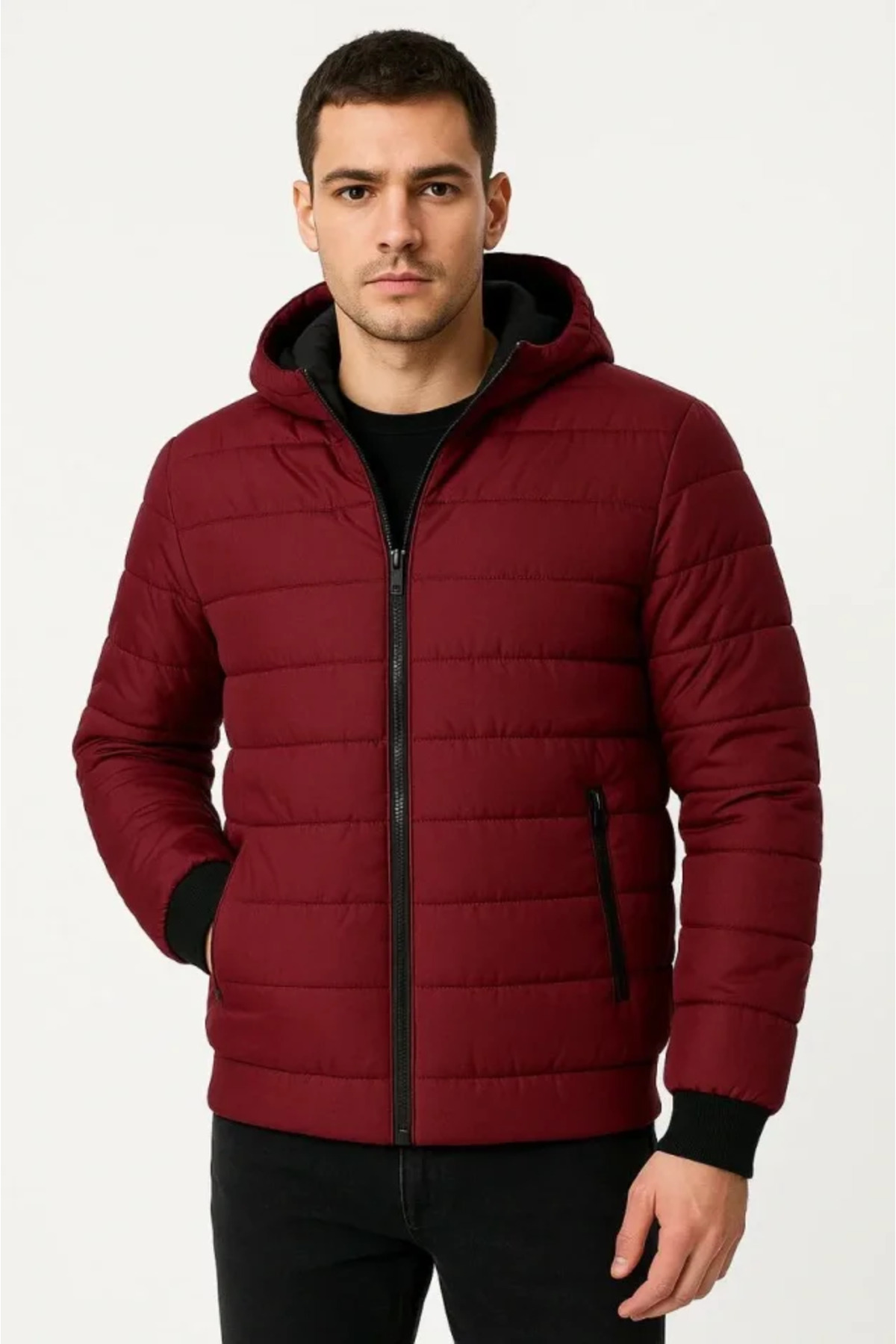 کاپشن مردانه زیپدار کلاهدار و پددار با آستر لحافی ضد آب، جیبدار، کاپشن زمستانی راحت