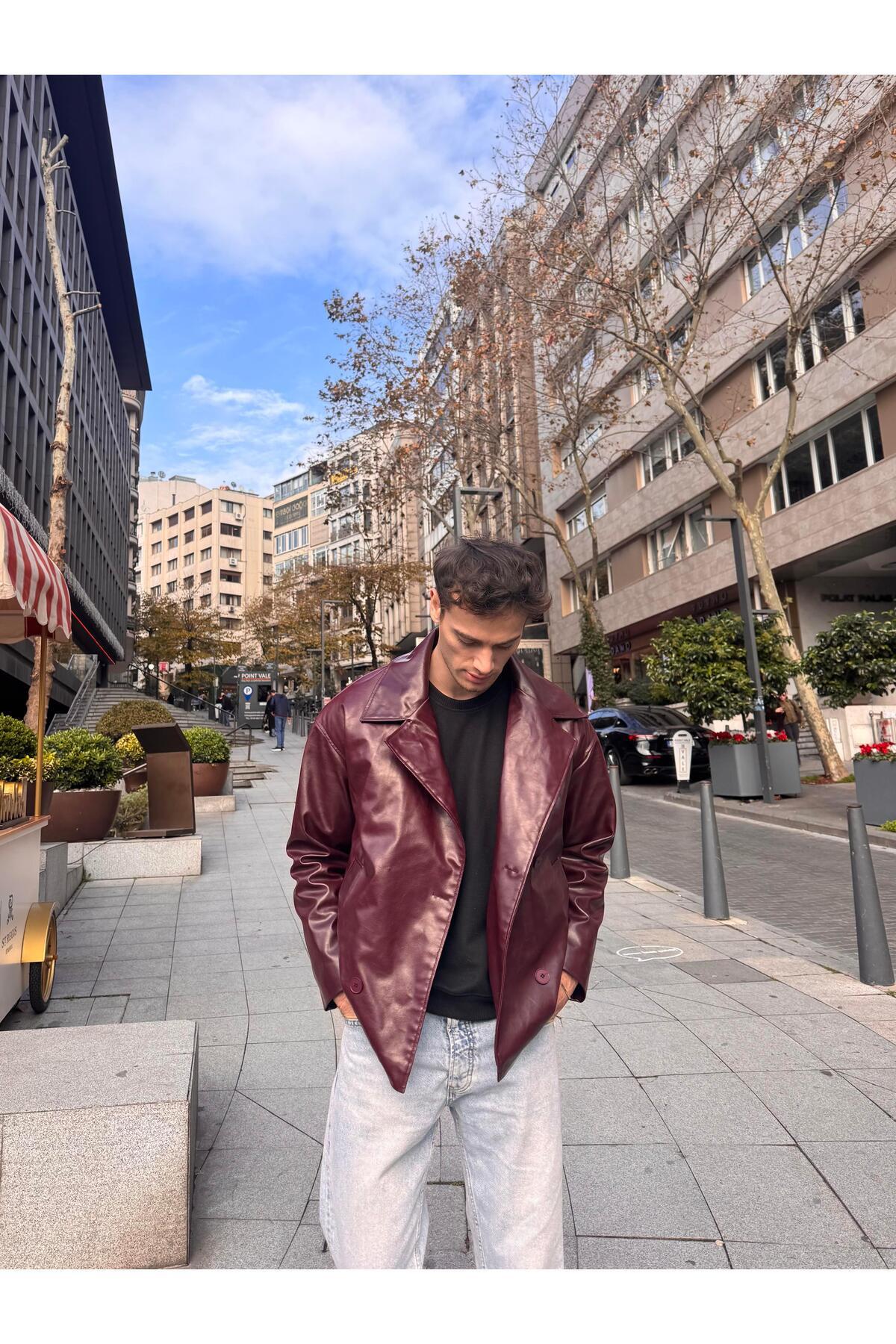 کت چرمی کوتاه مردانه به رنگ زرشکی